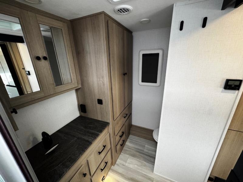 With any Forester MBS Class C diesel motorhome by Forest River, you will have a diesel Mercedes chassis, a 10" touch screen with CarPlay/Android radio with USB and Bluetooth, plus a backup camera with side view cameras and 3-way monitor to easily maneuver the road. The Gateway 4G WiFi capability and Winegard Air 360+ digital antenna will help keep you connected, and the optional 190W charging system gives you the option to go off-grid if you choose. The spacious living area and well-appointed décor will make you feel at home, plus the bathroom's motion sensor light and oxygen-infused shower head with a flexible extension will provide the comfort and style you are wanting in your next RV!