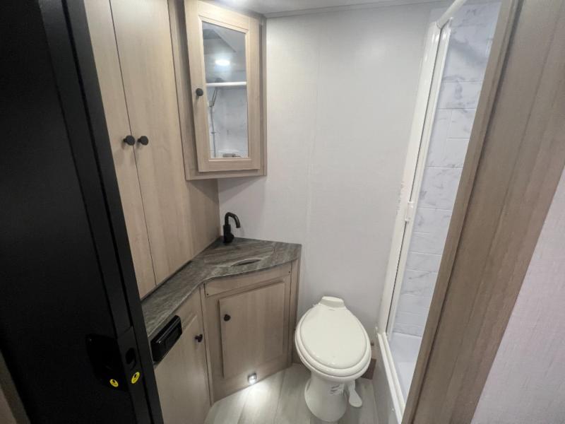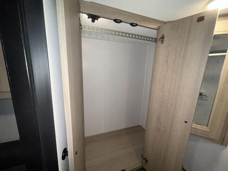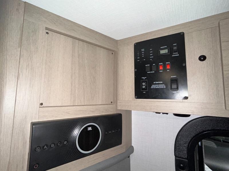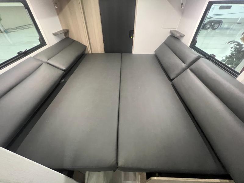 This is the perfect couples coach with twin beds, a rear full bathroom with a shower, and a wardrobe for your things. There is a love seat with a table where you can dine together, or you might want to sit outdoors under the 14' power awning. The slide out will provide more interior floor space, the swivel driver and passenger seats allow you to invite over other RVers, and the kitchen offers everything you will need to make meals. You will also find an entertainment center over the cab, a 12V LED flat panel adjustable side TV, plus a 12V bedroom TV. And an optional 190 watt roof-mounted solar powered 12V charging system can be added for off-grid capabilities.