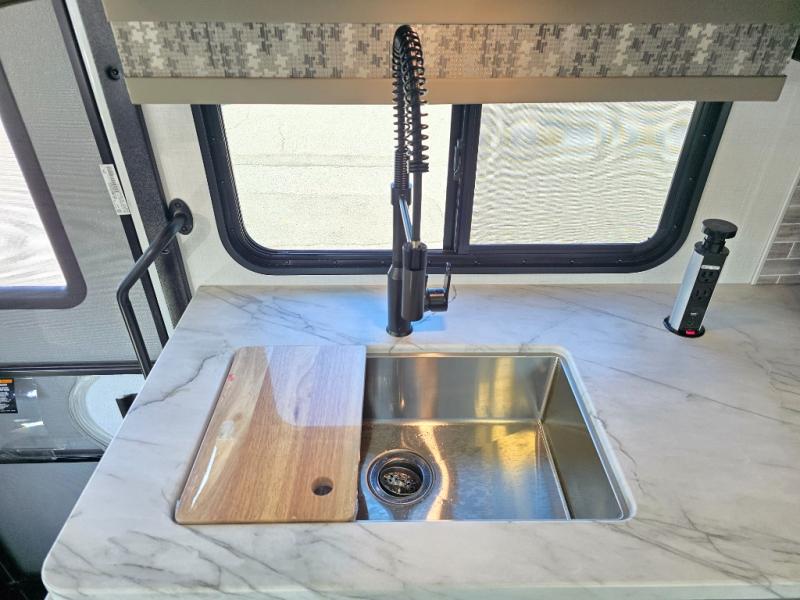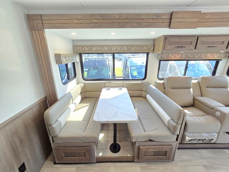 With each FR3 Class A gas motorhome by Forest River, you will find an easy-to-drive coach with a spacious interior allowing you to gather with friends and family with convenience and style found throughout! Each is built with vacuum-bonded construction, a one-piece fiberglass roof with extended rain spouts, a steel firewall and A-pillar extension, Bi-LED headlamps and lower LED fog lights, and grey Rotocast storage boxes with drains. Inside, you will enjoy black hardware, appliances, plumbing fixtures, and a glass shower door frame. You will also find a stainless steel kitchen sink with a bamboo cutting board and roll-up dryer, heavy-duty full-extension ball bearing drawer guides, dual-access dinette storage with doors, and nightstands with charging stations to keep your cellphones ready for whatever is next. Make your selection today!