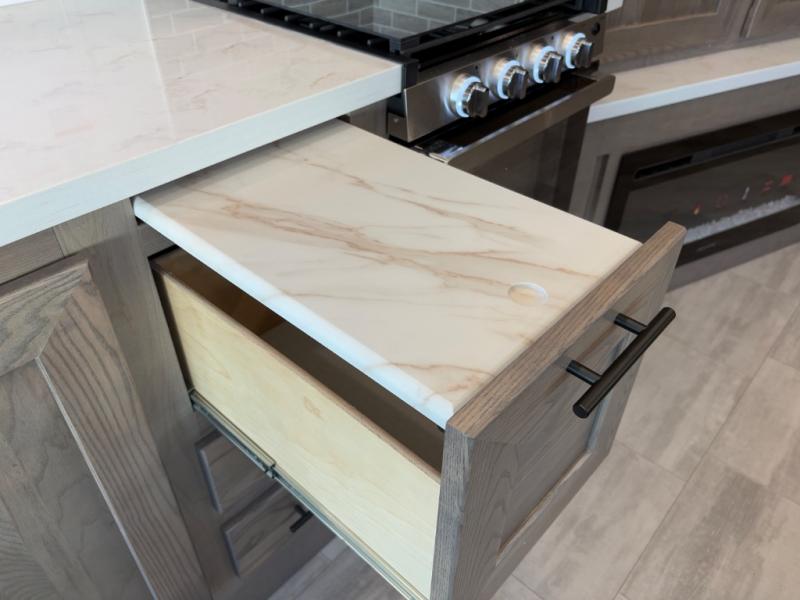- Pull-out countertop extension for extra prep space