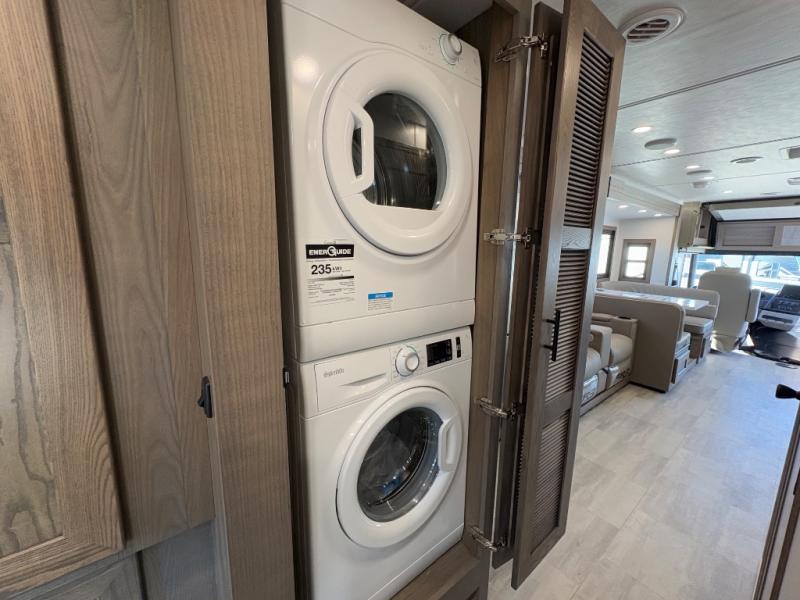- Stackable washer/dryer prep for extended trips