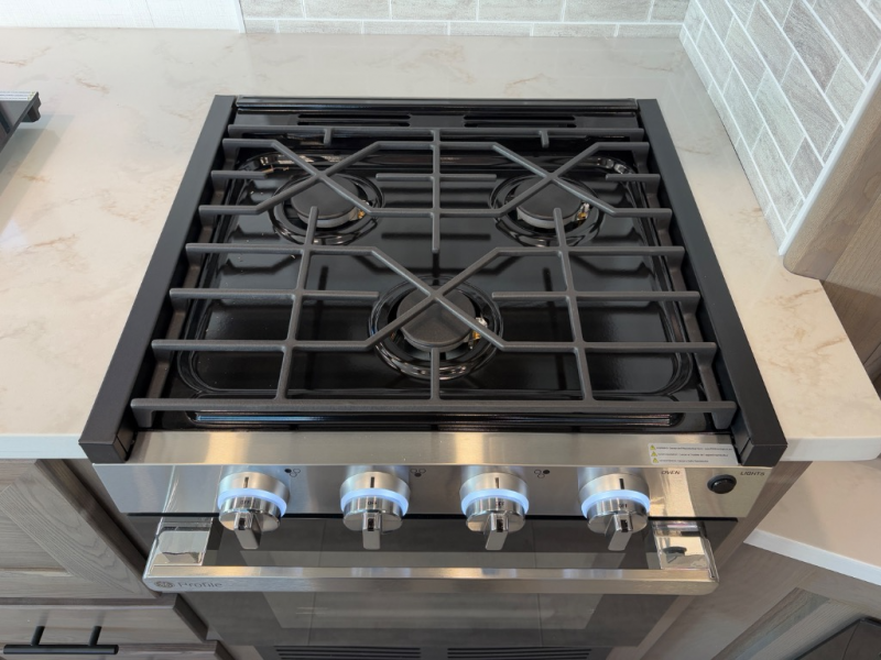 - Stainless steel three-burner cooktop with 22" oven