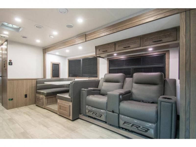 With any FR3 Plus Class A gas motorhome by Forest River, you will find a step up from the FR3, including a modern slick exterior with full-body paint options! Since this coach includes vacuum bonded construction, you can enjoy traveling for years to come, and the full fiberglass front cap provides added protection. Each drive is made comfortable by the two-tone ultra leather captain's seats, plus there is a Sony 10.1" dash radio that includes a color back-up monitor and more to make the journey that much smoother! You will stay powered up by the 6.0kW NPS Yamaha generator, 200W solar panels with a Go Power solar controller, (2) 100 Amp Battle Born lithium batteries, and more. The interior of the FR3 Plus includes solid surface kitchen countertops, IVC residential vinyl flooring, stainless steel kitchen features, and many more comforts!