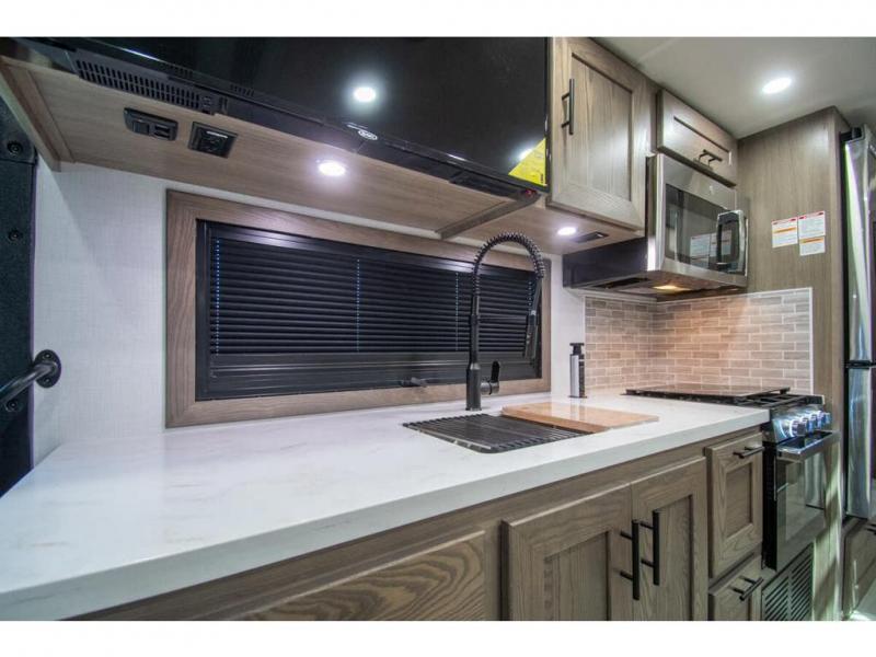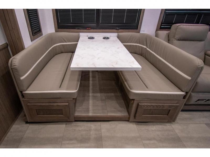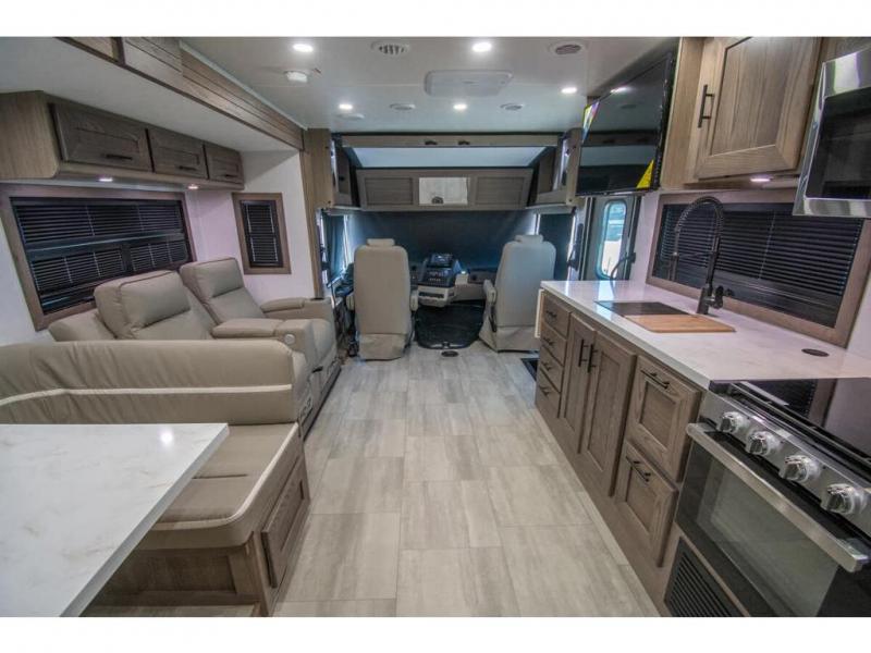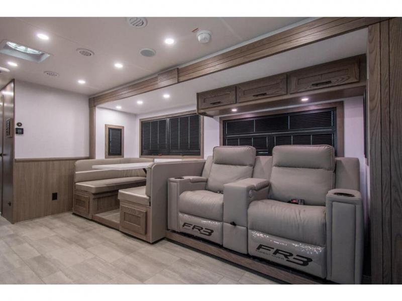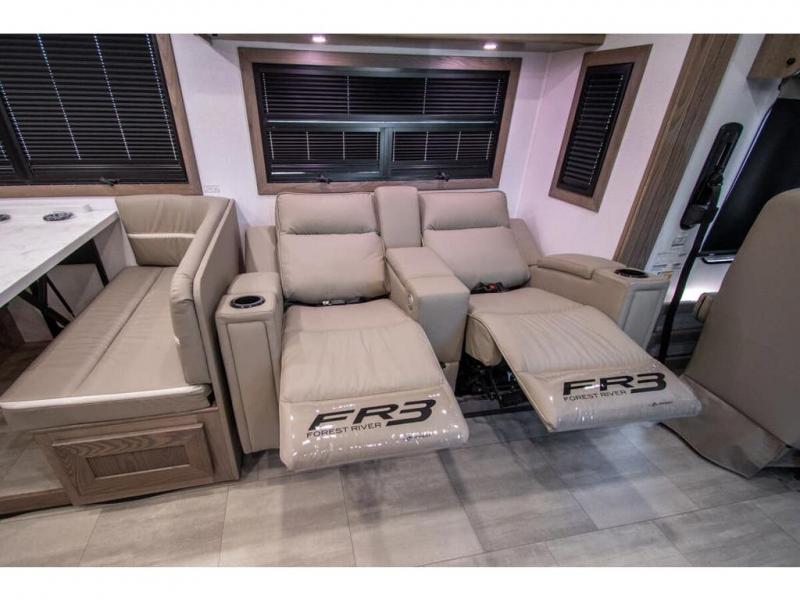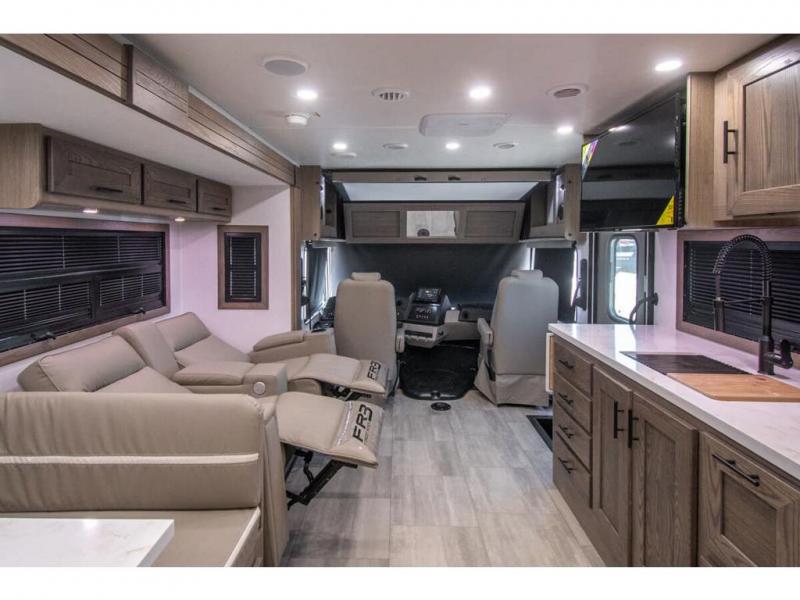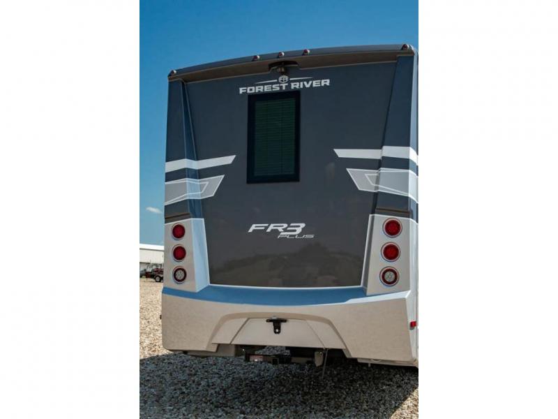 With any FR3 Plus Class A gas motorhome by Forest River, you will find a step up from the FR3, including a modern slick exterior with full-body paint options! Since this coach includes vacuum bonded construction, you can enjoy traveling for years to come, and the full fiberglass front cap provides added protection. Each drive is made comfortable by the two-tone ultra leather captain's seats, plus there is a Sony 10.1" dash radio that includes a color back-up monitor and more to make the journey that much smoother! You will stay powered up by the 6.0kW NPS Yamaha generator, 200W solar panels with a Go Power solar controller, (2) 100 Amp Battle Born lithium batteries, and more. The interior of the FR3 Plus includes solid surface kitchen countertops, IVC residential vinyl flooring, stainless steel kitchen features, and many more comforts!