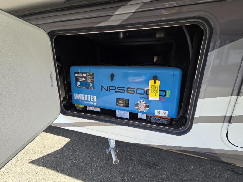 A spacious design and true luxury come together to create these Forest River Georgetown 5 Series Class A gas motorhomes! Their solid surface kitchen countertops, day and night shades throughout, and designer bedspread will have you feeling right at home. The color side and rear cameras help to prevent any dings or bumps while you travel, and the automatic hydraulic leveling jacks will keep your unit leveled where ever you set up. Durable construction consists of a crowned roof, 2" aluminum framed vacuum bonded gel coated sidewalls, plus high density block foam insulation that will allow you to travel in all seasons. You will appreciate the 50 Amp service, two house batteries, and 6,000 watt Yamaha generator to keep you powered up. An outside shower is also included on all models, along with rotocast storage compartments with drains, a power awning, and so much more!