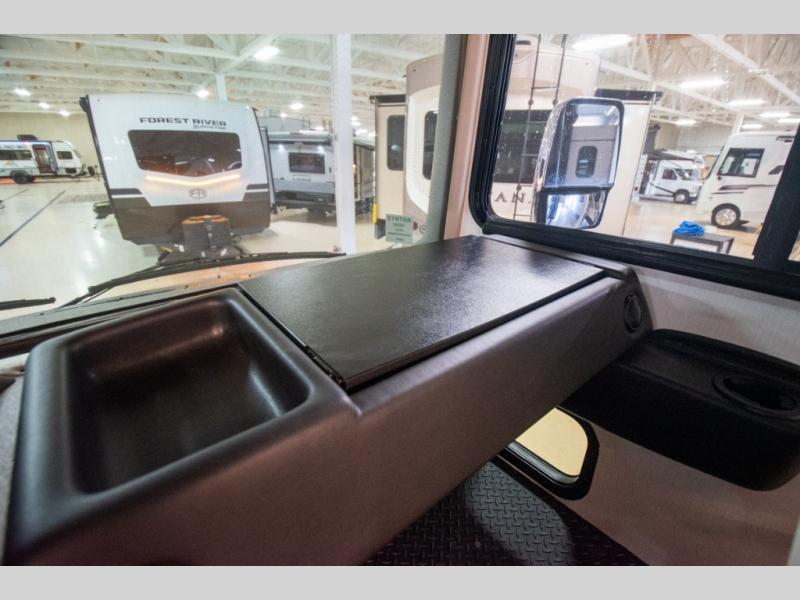 Comfort and convenience is found all throughout this motorhome! Starting with the full rear master bath that has a shower with a seat and a dual sink vanity, plus it leads into the private bedroom. Inside the bedroom is a 72" x 80" Power Tilt king bed slide with overhead cabinets across from a dresser with overhead cabinets and a 32" LED TV, a wardrobe, and another wardrobe that is prepped to add an optional stackable washer and dryer. The half bathroom is conveniently near the fully equipped kitchen so you can get back to creating your best home cooked meals fast. Relax in true comfort each night by either playing games at the booth dinette or on the theater seating that comes with power recline, heat, and massage!