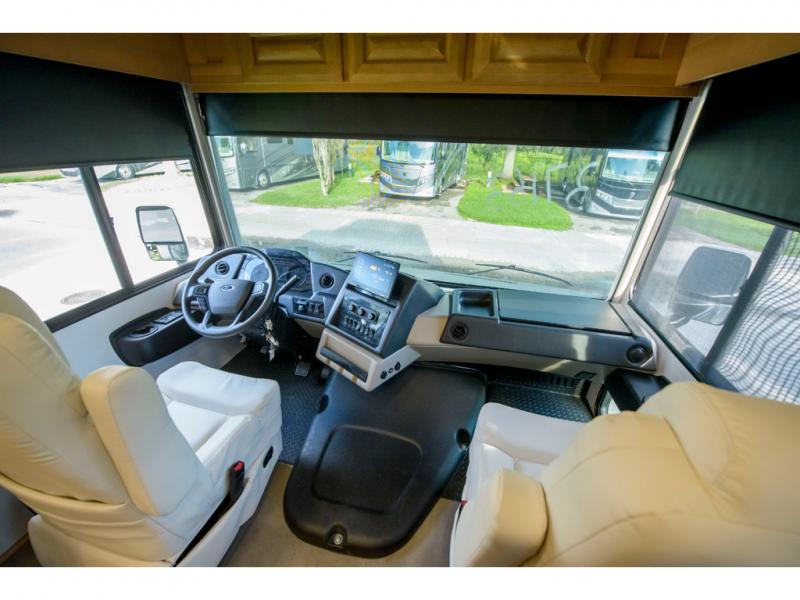 Start exploring your favorite destinations with one of these Forest River Georgetown 7 Series Class A gas motorhomes! Their solid surface kitchen countertops and stainless steel appliances will have you feeling right at home. There are also day/night shades, wood trim around the windows, a clear glass shower door, and more interior comforts. The Arctic package lets you travel farther into the year, and the automatic hydraulic 4-point leveling system will keep your unit leveled where ever you set up. The construction consists of aluminum framed vacuum bonded floors and gel coated sidewalls, a crowned roof, and high-density block foam insulation so you can camp year around or go full-time! The drive will be just as enjoyable as the destination with swivel captain's seats, a custom cockpit soft touch dash, and a Sony 10" entertainment system!