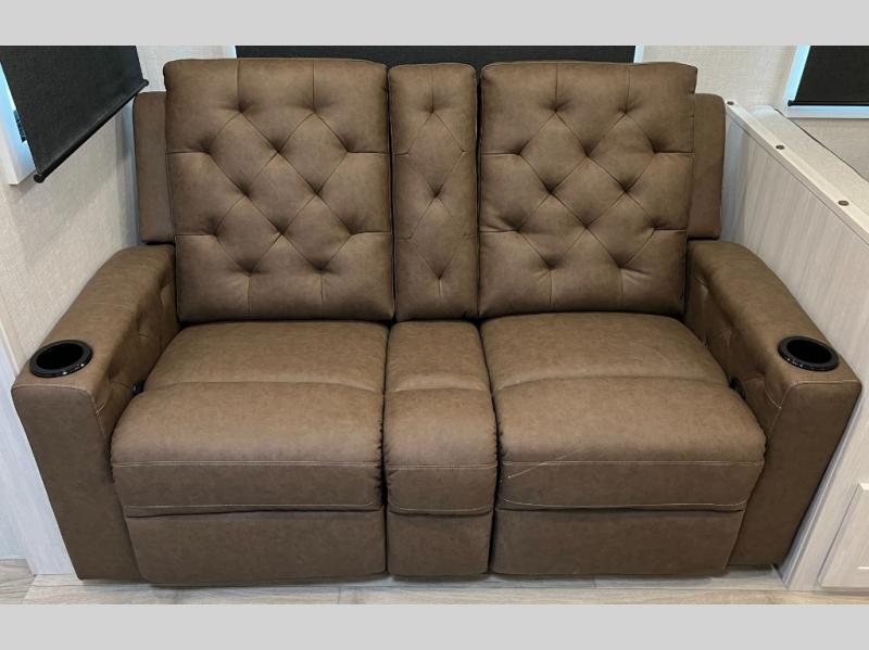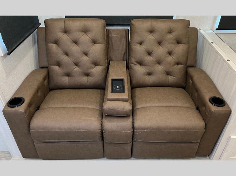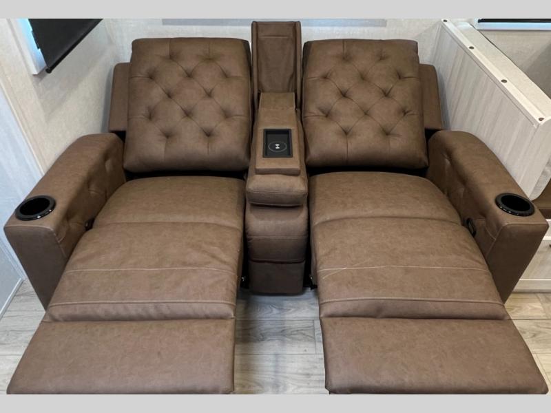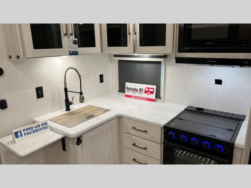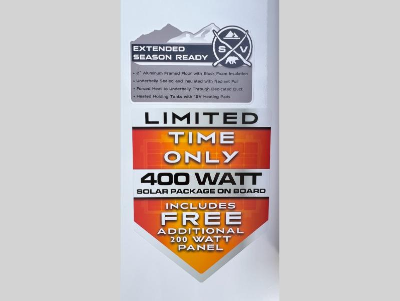 With Upgrade 400W Solar Package, Custom King Bed, Central Vacuum System, Extended Season Ready, Outdoor Kitchen, Tankless Water Heater, Walk In Pantry, Theater Seats, Booth Dinette and Full Rear Bath.