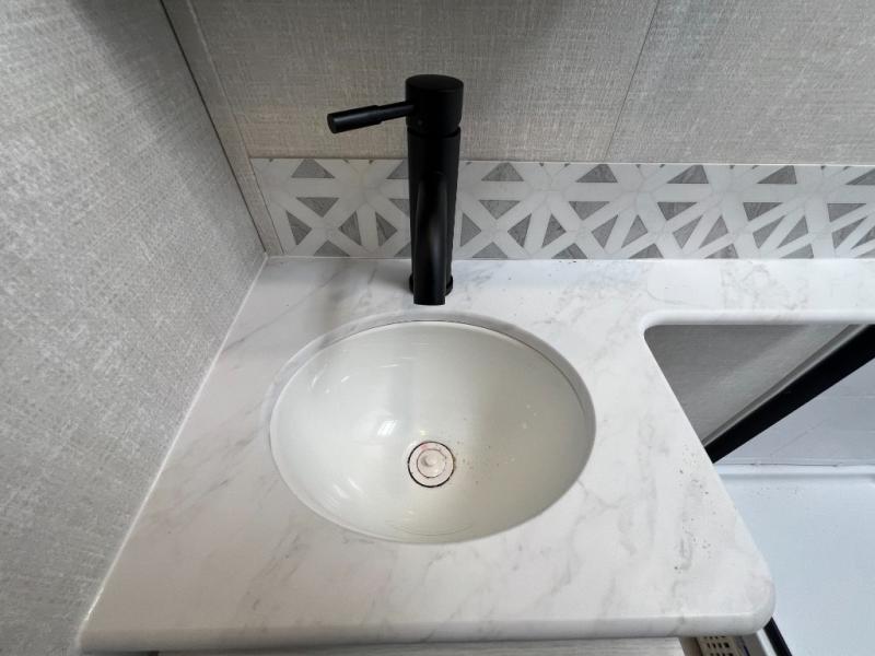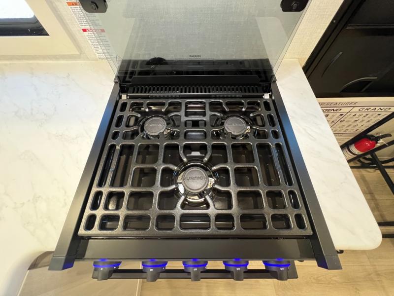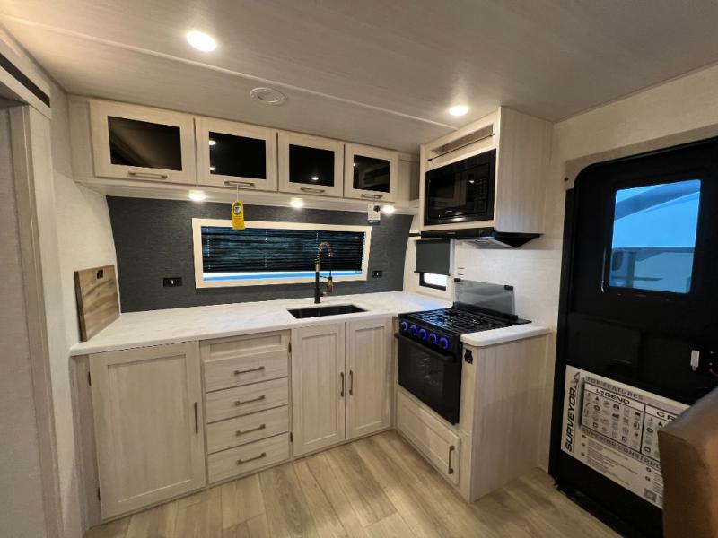 With any Grand Surveyor travel trailer by Forest River you will enjoy turn-key ready-to-go features and quality construction! Each model includes Azdel composite walls and a gel coated fiberglass front cap with an automotive style tinted windshield for a sleek look. There are friction hinge black glass entry door(s), an adjustable platform step with a night light, plus Goodyear tires and a power tongue jack for easy towing. The interior will have you feeling right at home with roller shades, residential faucets, sinks, and bathroom vanity, plus Surf(x) seamless countertops throughout. You can also plan for adventure with a 2" rear accessory and exterior spray port, and there are slam latch exterior baggage doors throughout to keep all your gear secure. Other stand-out features include a central vacuum system, a 200 watt solar panel with a 30 amp controller, a tankless water heater, carpet-free interiors, and the list goes on!