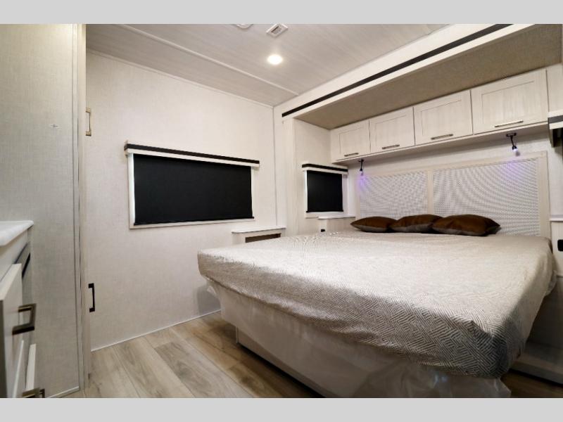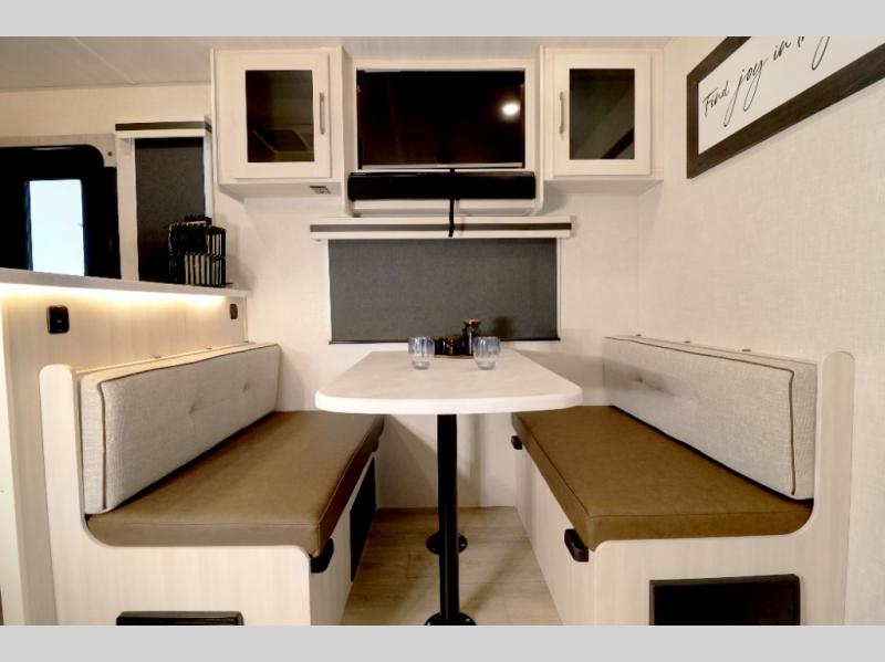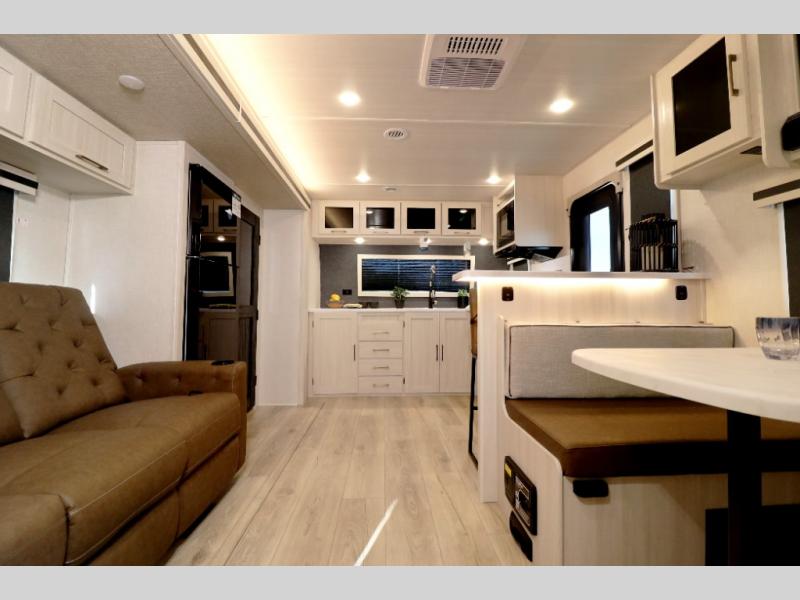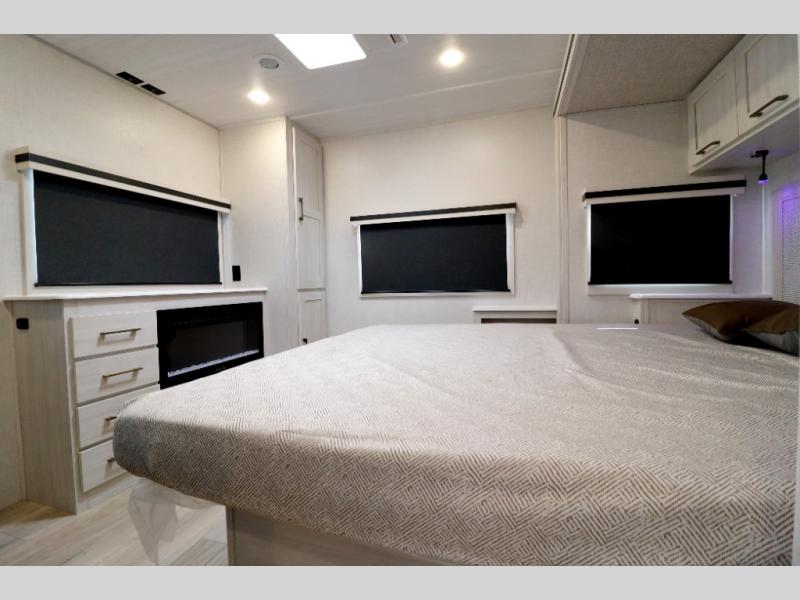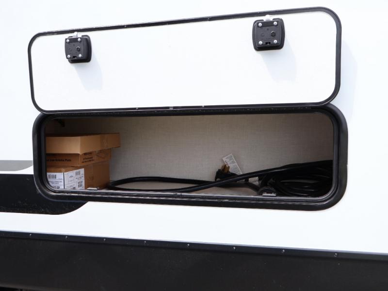 This travel trailer is a masterpiece of comfort, style, and functionality. Take the party outside with the outdoor kitchen, perfect for family dining, socializing, and making unforgettable memories! Retreat to the serene bedroom, featuring a king bed, spacious wardrobe, and overhead storage for effortless organization, plus, cozy up by the warm fireplace on chilly nights. Moreover, the incredible kitchen is a culinary dream, equipped with a pantry, 10 cu. refrigerator, overhead cabinets, and a countertop with stylish bar stools. The living room is a haven of relaxation, boasting a vibrant LED TV, overhead cabinets, and theater seating. Also, share meals with loved ones at the convenient dinette. Finally, bath in the amazing full bathroom, perfect for cleaning up after a long day in the woods.