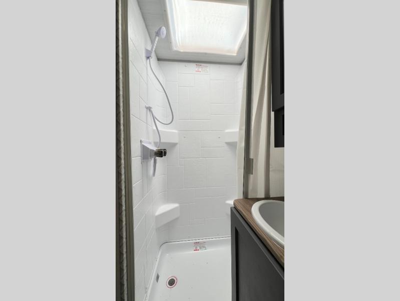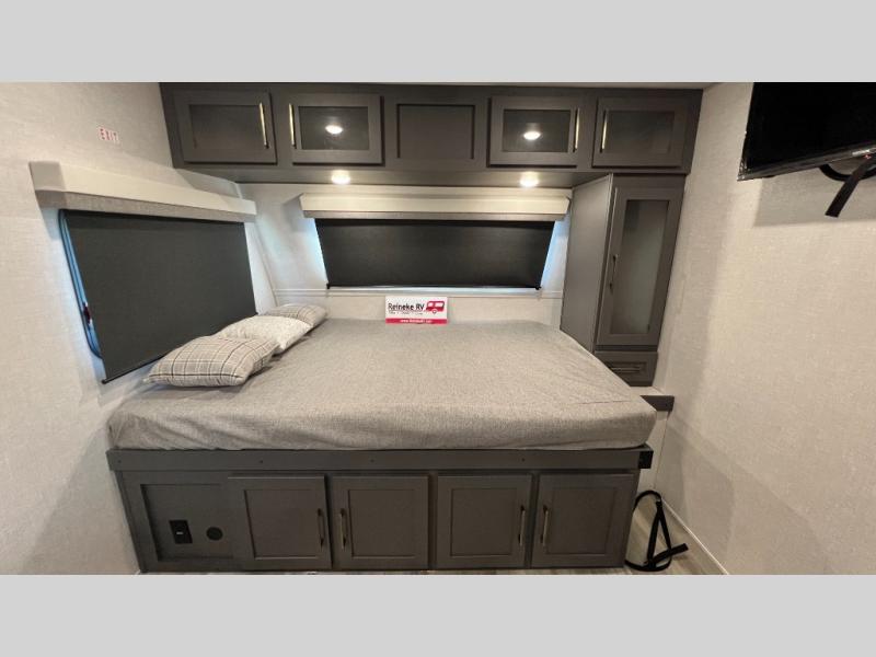 With any IBEX travel trailer or toy hauler by Forest River, you will find a fully enclosed underbelly with radiant foil for added insulation and a Cold Weather Package with 12V heated tank pads to help extend your camping season. There are also laminated walls with aluminum construction and Azdel composite substrate and a TPMS system with a wireless display so you can easily keep an eye on your tire pressure levels. The mandatory XLT Package also comes with a rugged tire and wheel package, solid surface entry steps, and a solar package with a 200W solar panel, 20A charge controller, and 2000W inverter prep.