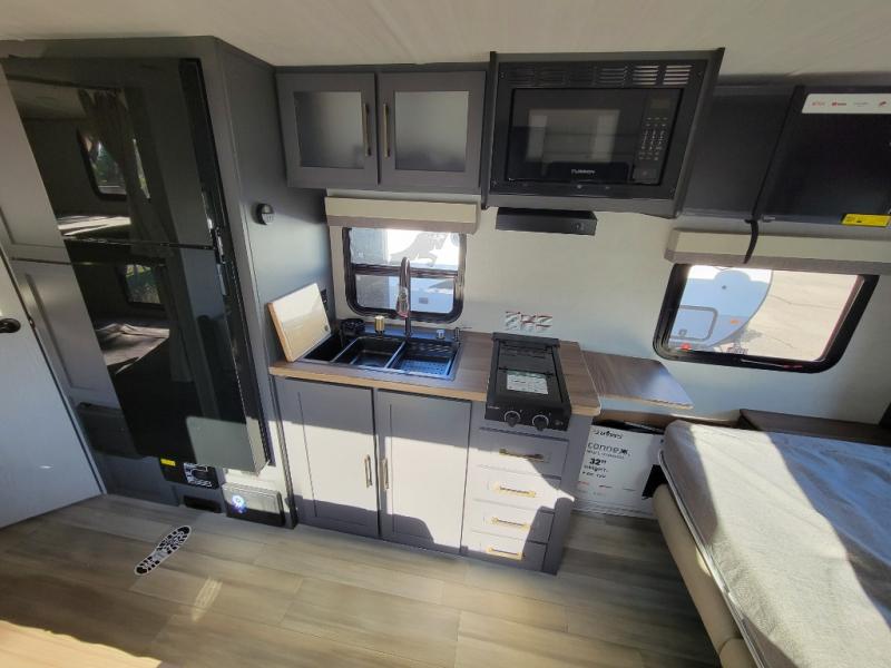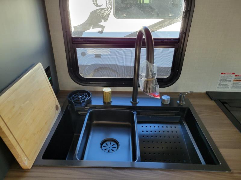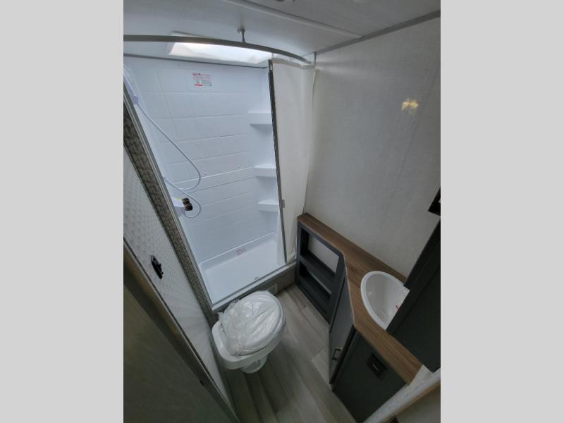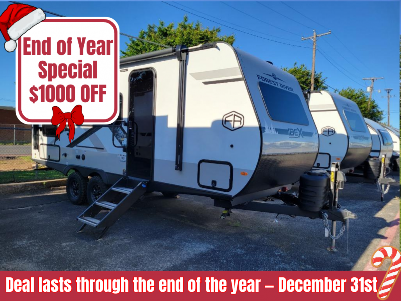 With any IBEX travel trailer or toy hauler by Forest River, you will find a fully enclosed underbelly with radiant foil for added insulation and a Cold Weather Package with 12V heated tank pads to help extend your camping season. There are also laminated walls with aluminum construction and Azdel composite substrate and a TPMS system with a wireless display so you can easily keep an eye on your tire pressure levels. The mandatory XLT Package also comes with a rugged tire and wheel package, solid surface entry steps, and a solar package with a 200W solar panel, 20A charge controller, and 2000W inverter prep.