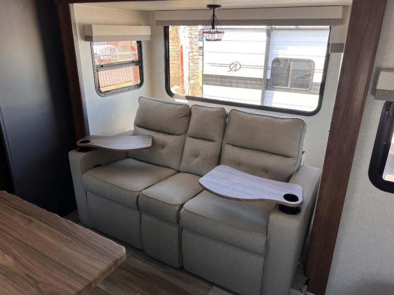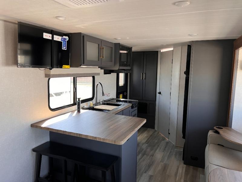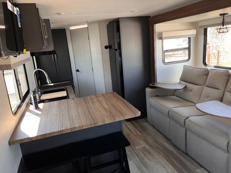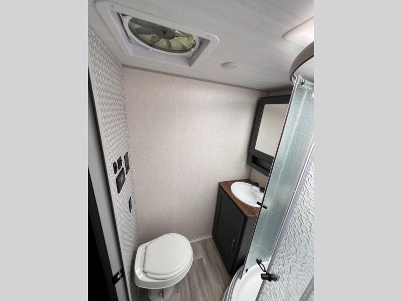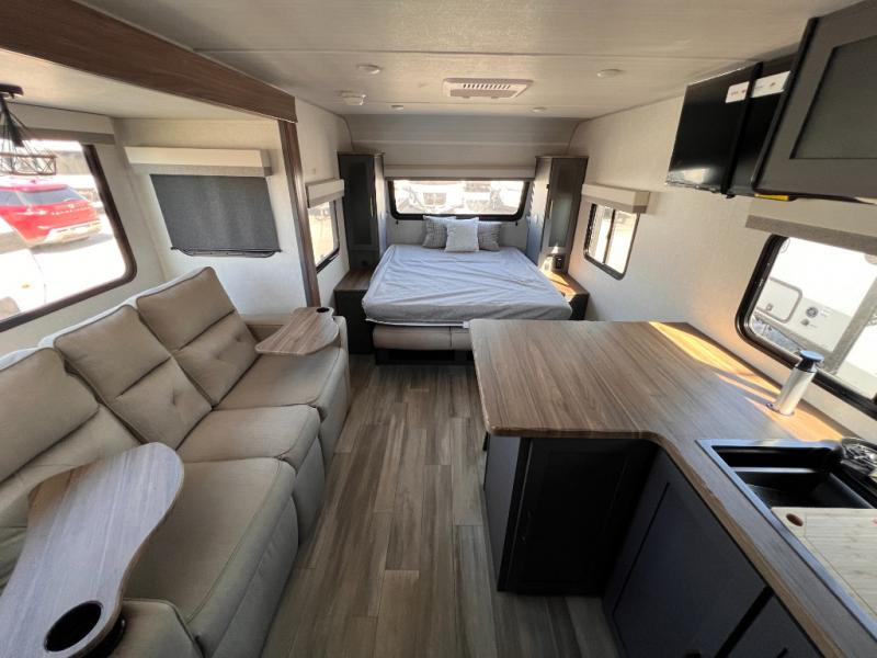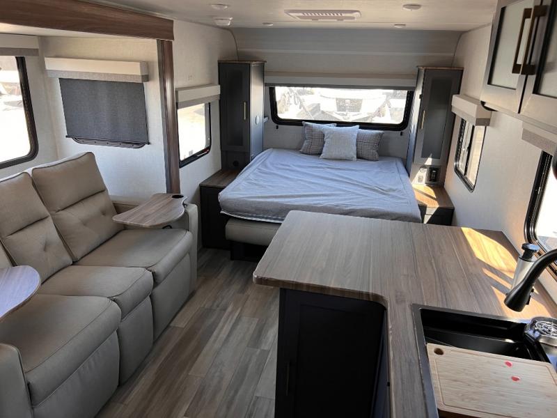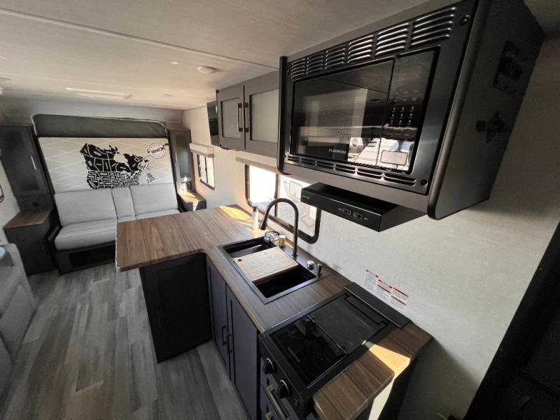 With any IBEX travel trailer or toy hauler by Forest River, you will find a fully enclosed underbelly with radiant foil for added insulation and a Cold Weather Package with 12V heated tank pads to help extend your camping season. There are also laminated walls with aluminum construction and Azdel composite substrate and a TPMS system with a wireless display so you can easily keep an eye on your tire pressure levels. The mandatory XLT Package also comes with a rugged tire and wheel package, solid surface entry steps, and a solar package with a 200W solar panel, 20A charge controller, and 2000W inverter prep. For those who wish to go further off-road, the optional Beast Mode Package can be added that features an independent suspension, 400 watts of solar power, and more!