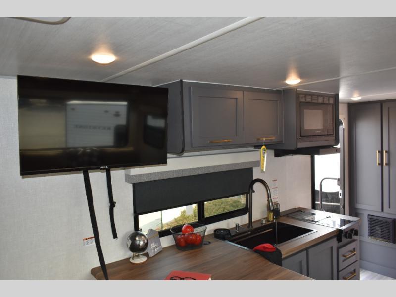 With any IBEX travel trailer or toy hauler by Forest River, you will find a fully enclosed underbelly with radiant foil for added insulation and a Cold Weather Package with 12V heated tank pads to help extend your camping season. There are also laminated walls with aluminum construction and Azdel composite substrate and a TPMS system with a wireless display so you can easily keep an eye on your tire pressure levels. The mandatory XLT Package also comes with a rugged tire and wheel package, solid surface entry steps, and a solar package with a 200W solar panel, 20A charge controller, and 2000W inverter prep. For those who wish to go further off-road, the optional Beast Mode Package can be added that features an independent suspension, 400 watts of solar power, and more!