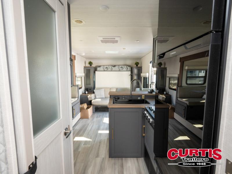 With any IBEX travel trailer or toy hauler by Forest River, you will find a fully enclosed underbelly with radiant foil for added insulation and a Cold Weather Package with 12V heated tank pads to help extend your camping season. There are also laminated walls with aluminum construction and Azdel composite substrate and a TPMS system with a wireless display so you can easily keep an eye on your tire pressure levels. The mandatory XLT Package also comes with a rugged tire and wheel package, solid surface entry steps, and a solar package with a 200W solar panel, 20A charge controller, and 2000W inverter prep. For those who wish to go further off-road, the optional Beast Mode Package can be added that features an independent suspension, 400 watts of solar power, and more!