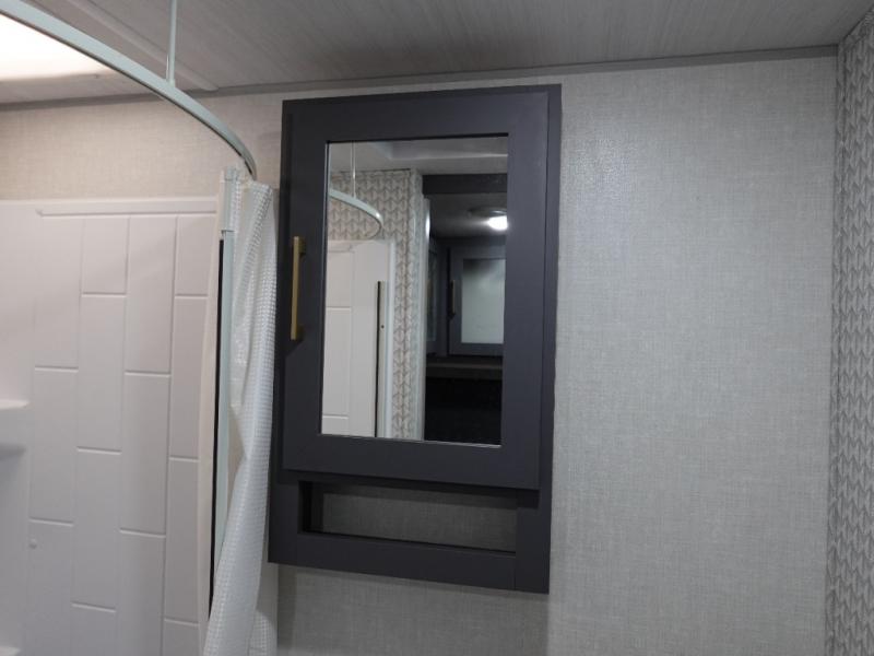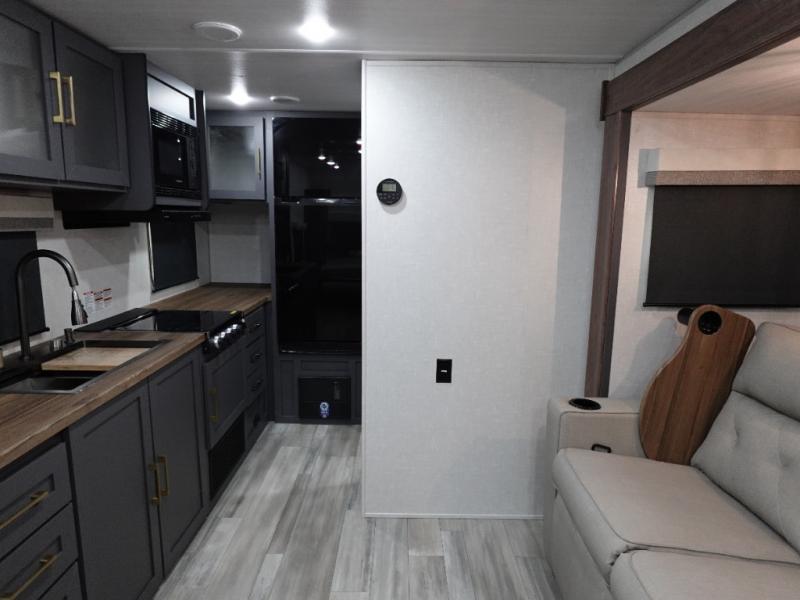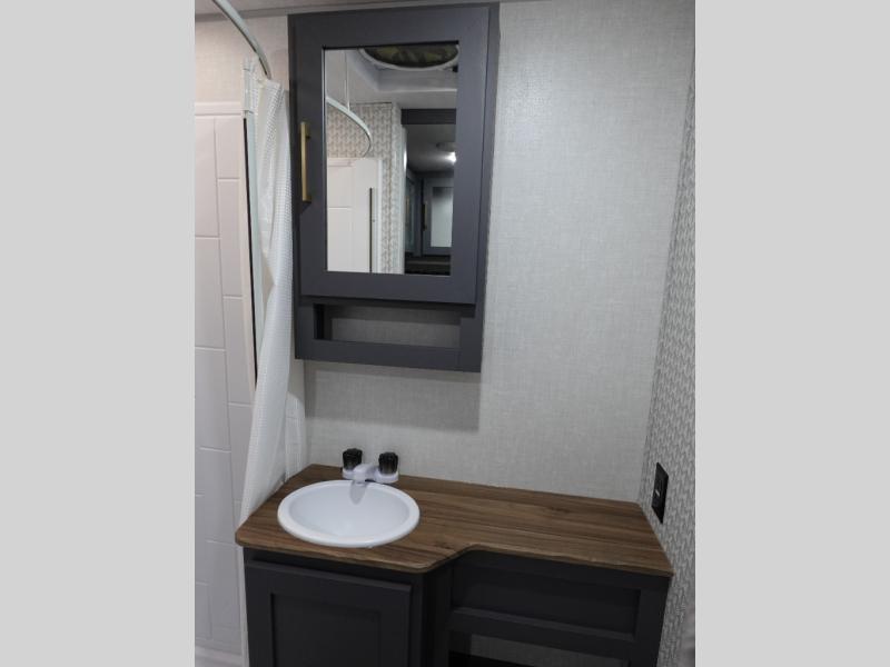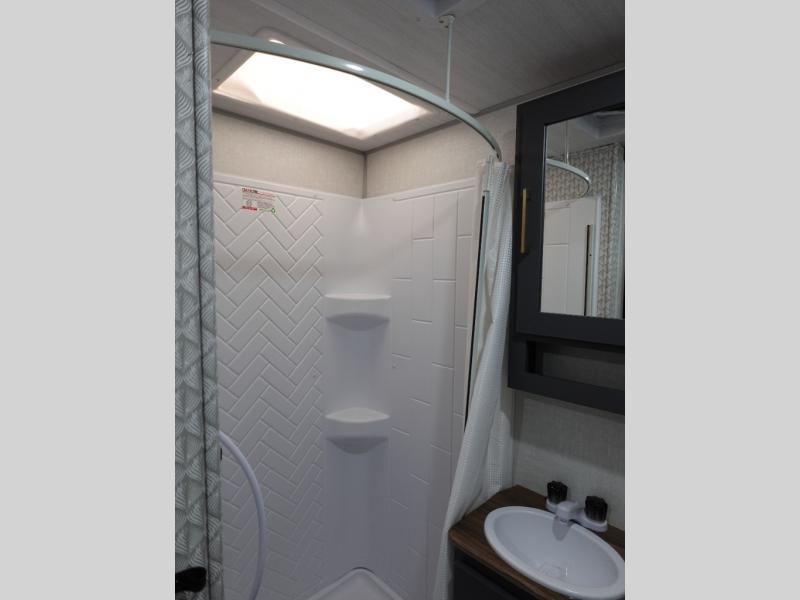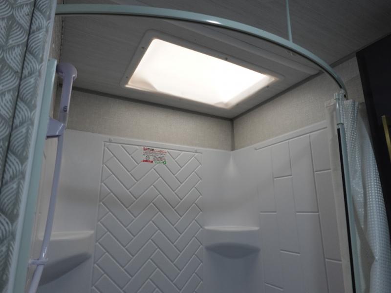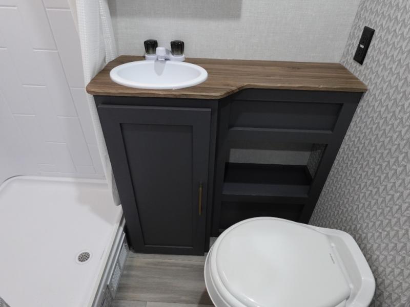 This Forest River IBEX travel trailer has a clever use of space that gives you a lot of options. The kitchen features ample counter space to prep meals, and you can relax on the sofa slide out after dinner. When it's time for bed, there's a 60" x 80" Murphy bed which will be super comfortable for a good night's sleep! The rear corner bath has a roomy shower to freshen up each day, along with a toilet, sink, and medicine cabinet.