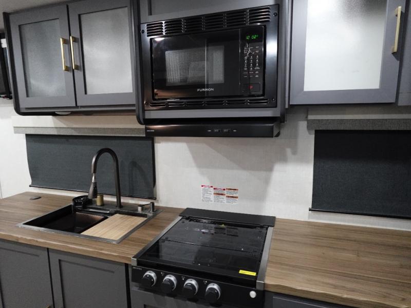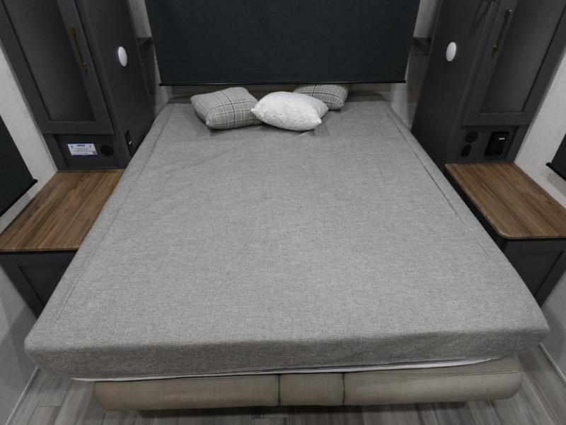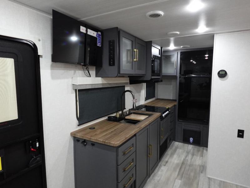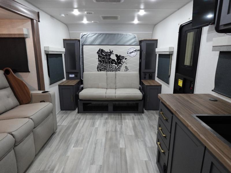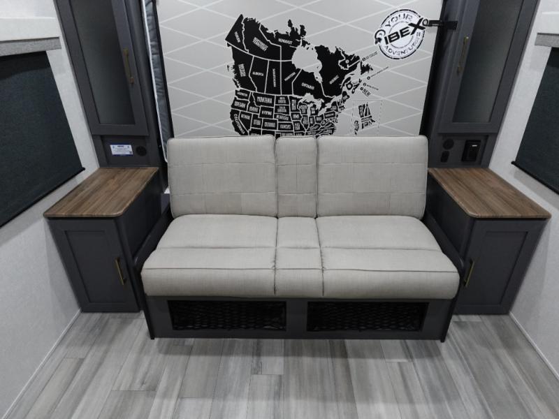 With any IBEX travel trailer or toy hauler by Forest River, you will find a fully enclosed underbelly with radiant foil for added insulation and a Cold Weather Package with 12V heated tank pads to help extend your camping season. There are also laminated walls with aluminum construction and Azdel composite substrate and a TPMS system with a wireless display so you can easily keep an eye on your tire pressure levels. The mandatory XLT Package also comes with a rugged tire and wheel package, solid surface entry steps, and a solar package with a 200W solar panel, 20A charge controller, and 2000W inverter prep.