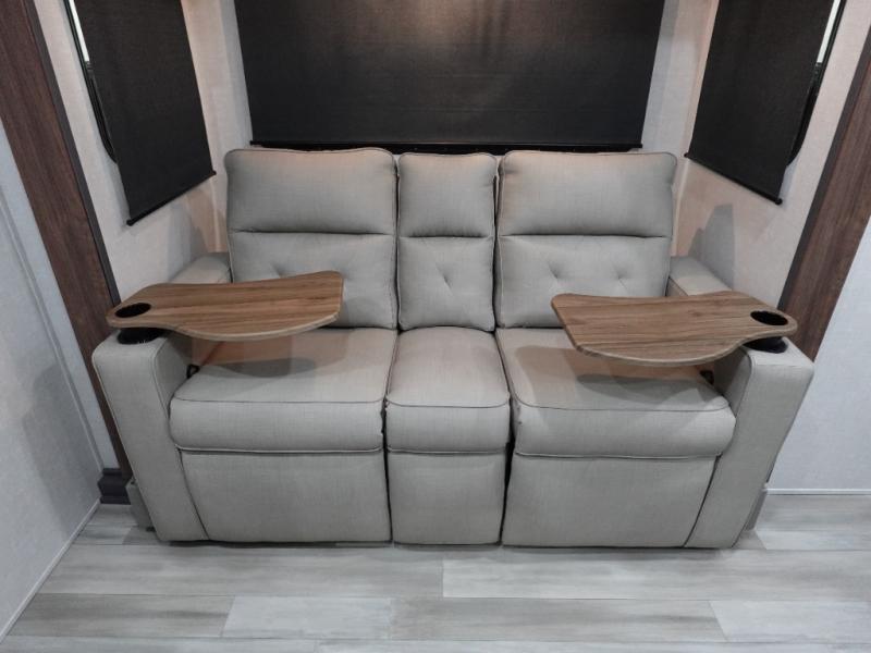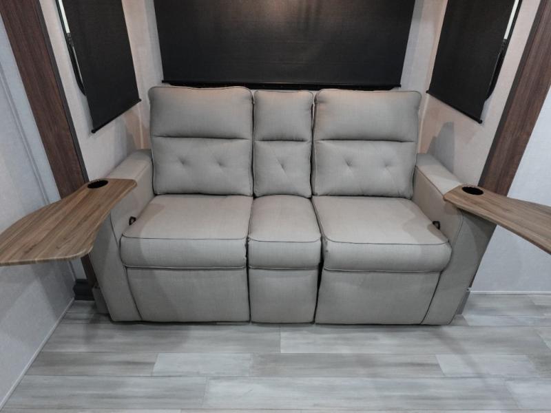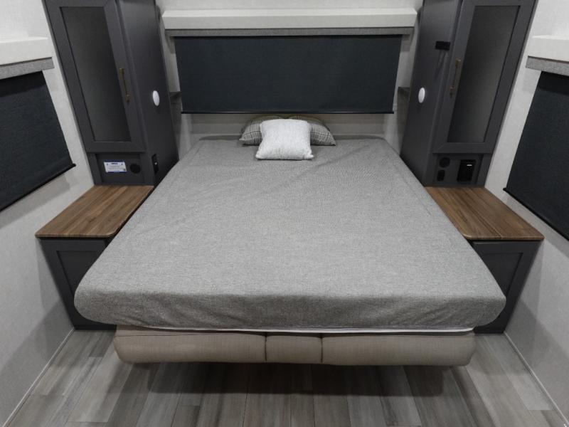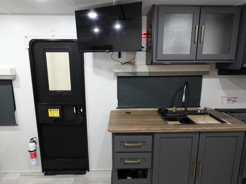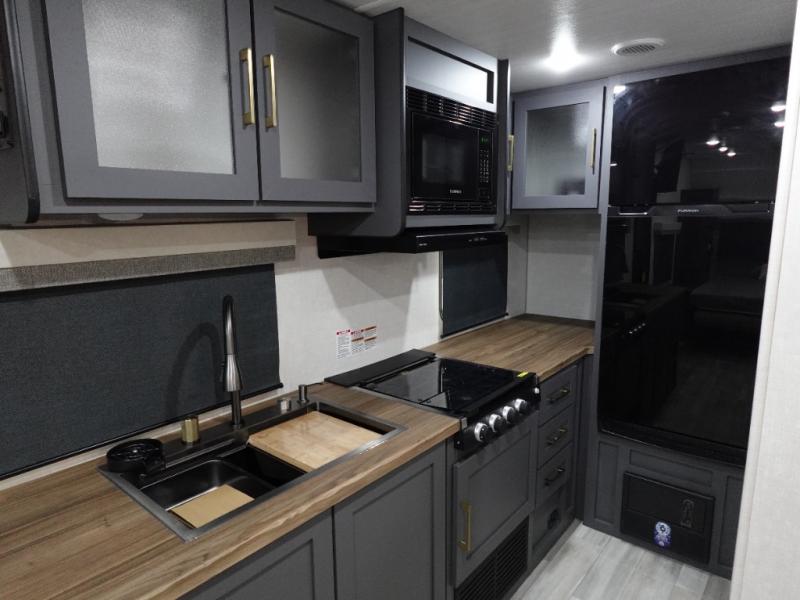 With any IBEX travel trailer or toy hauler by Forest River, you will find a fully enclosed underbelly with radiant foil for added insulation and a Cold Weather Package with 12V heated tank pads to help extend your camping season. There are also laminated walls with aluminum construction and Azdel composite substrate and a TPMS system with a wireless display so you can easily keep an eye on your tire pressure levels. The mandatory XLT Package also comes with a rugged tire and wheel package, solid surface entry steps, and a solar package with a 200W solar panel, 20A charge controller, and 2000W inverter prep.