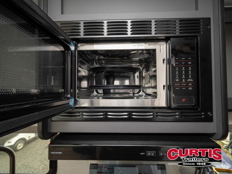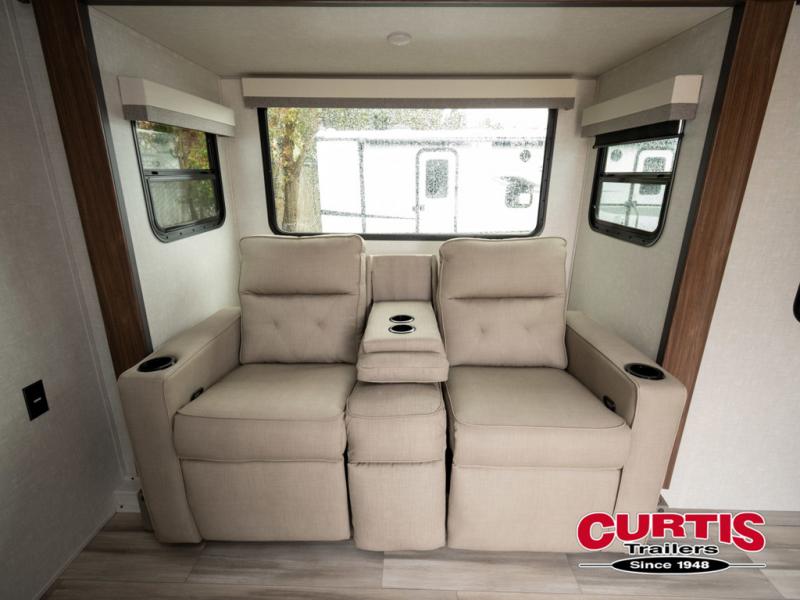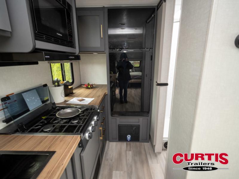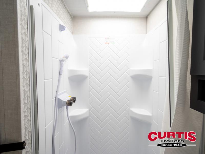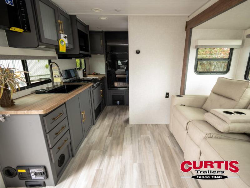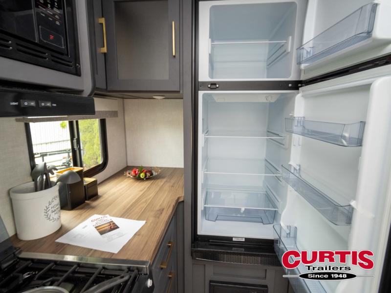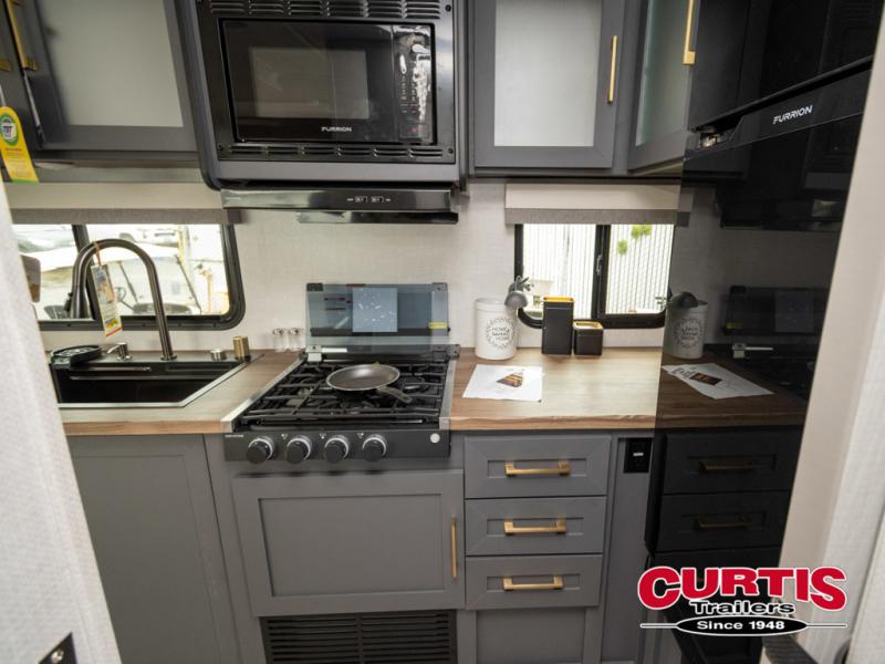 This Forest River IBEX travel trailer has a clever use of space that gives you a lot of options. The kitchen features ample counter space to prep meals, and you can relax on the sofa slide out after dinner. When it's time for bed, there's a 60" x 80" Murphy bed which will be super comfortable for a good night's sleep! The rear corner bath has a roomy shower to freshen up each day, along with a toilet, sink, and medicine cabinet.