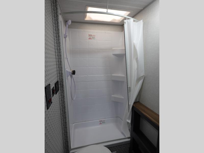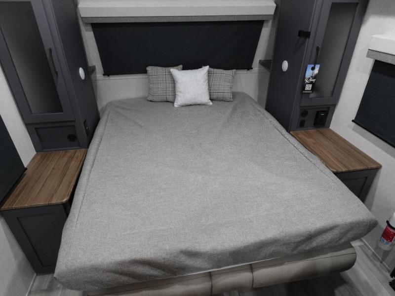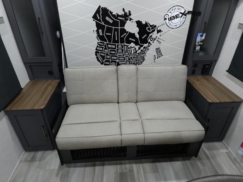 With any IBEX travel trailer or toy hauler by Forest River, you will find a fully enclosed underbelly with radiant foil for added insulation and a Cold Weather Package with 12V heated tank pads to help extend your camping season. There are also laminated walls with aluminum construction and Azdel composite substrate and a TPMS system with a wireless display so you can easily keep an eye on your tire pressure levels. The mandatory XLT Package also comes with a rugged tire and wheel package, solid surface entry steps, and a solar package with a 200W solar panel, 20A charge controller, and 2000W inverter prep.