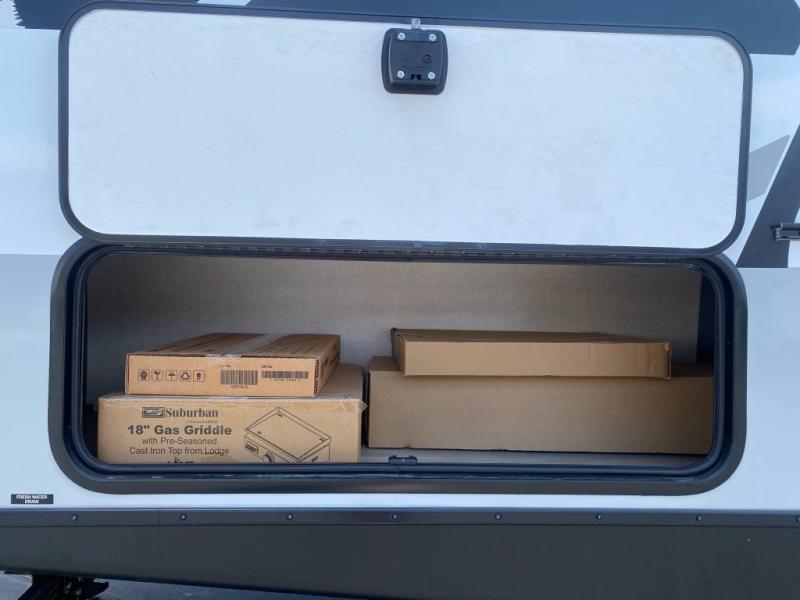 With any IBEX travel trailer or toy hauler by Forest River, you will find a fully enclosed underbelly with radiant foil for added insulation and a Cold Weather Package with 12V heated tank pads to help extend your camping season. There are also laminated walls with aluminum construction and Azdel composite substrate and a TPMS system with a wireless display so you can easily keep an eye on your tire pressure levels. The mandatory XLT Package also comes with a rugged tire and wheel package, solid surface entry steps, and a solar package with a 200W solar panel, 20A charge controller, and 2000W inverter prep.