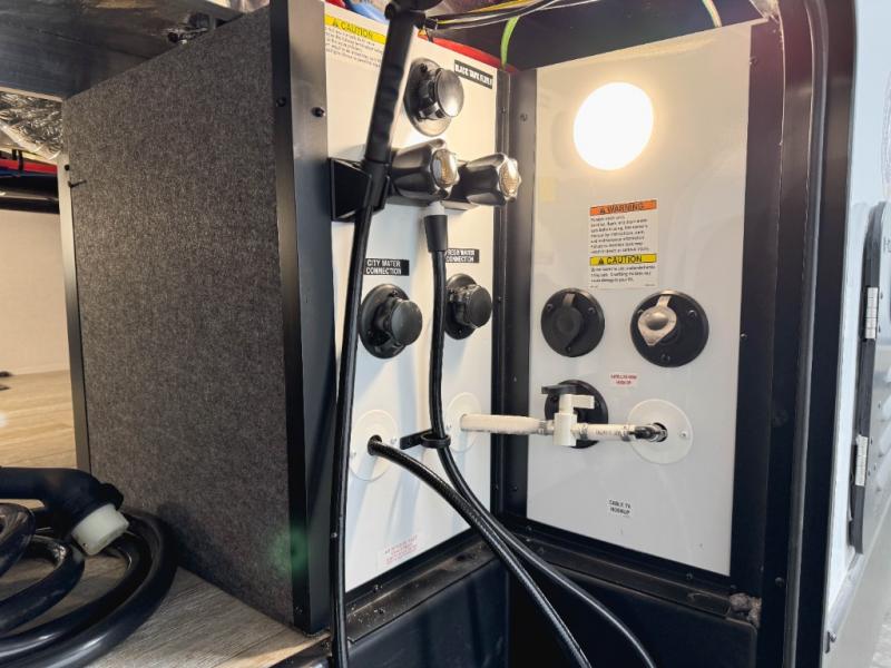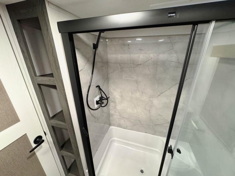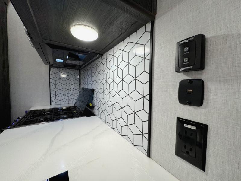 With any Impression mid-profile fifth wheel by Forest River, the focus of the design is comfort and value, built with quality craftsmanship and attention to customer's desires in each Impression! The exterior includes upgraded E-rated MAXXIS tires, custom exterior graphics package, and insulated slam latch baggage doors. There is also an enclosed docking station, an outside shower, and a 100W roof solar panel for off-grid capabilities. The fully heated and enclosed AccessiBelly has removable underbelly panels and offers four seasons of travel, and there is an industry leading 15K A/C plus 35K BTU furnace to keep you comfortable. The interior has lumbercore cabinetry, residential linoleum, residential backsplash in the kitchen, and oversized opening windows in the living area for more natural lighting and good air flow.