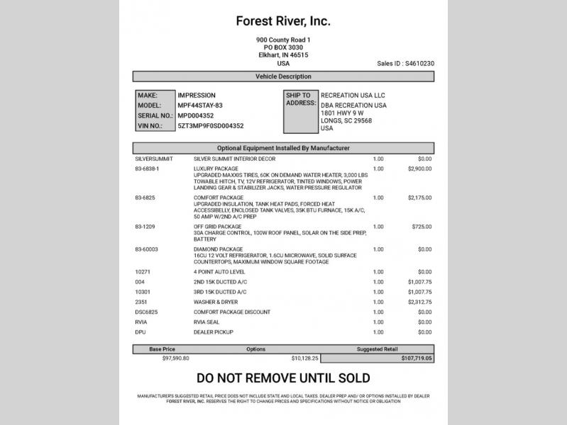 2025 Forest River Impression fifth wheel 44STAY highlights: