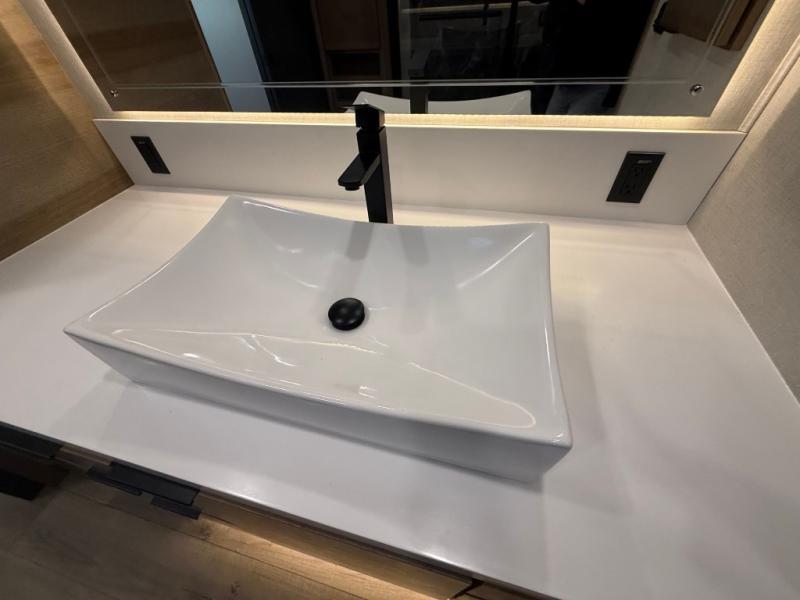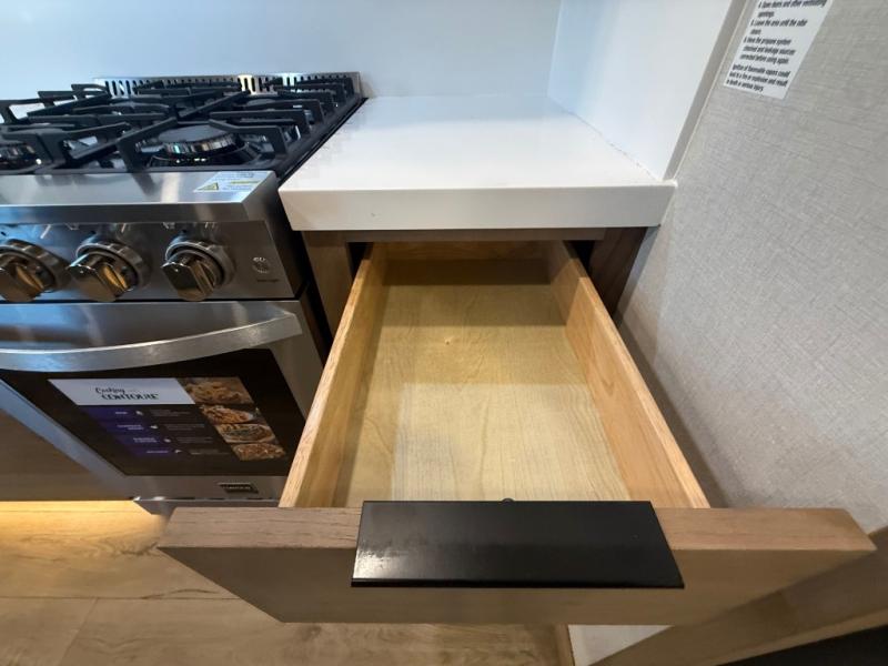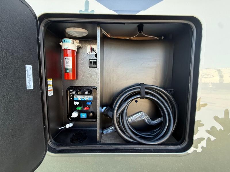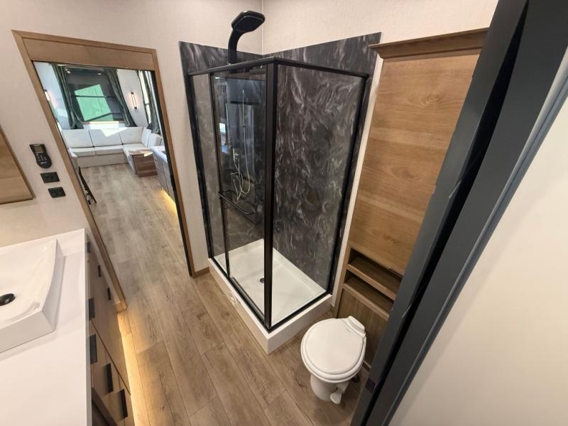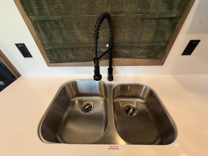 Luxury abounds in the Lost Pines destination trailer by Forest River. Each model features 3" hung wall construction, a rolled fiberglass roof, a thermofoil lined underbelly, and an Azdel gel coat fiberglass exterior wall for added durability. The full-body paint with 4x Clear Coat is sure to turn heads as you travel to your destination, and the LCI Road Armor suspension system will provide a smooth tow. You'll also find dual 40 lb. LP tanks outside, along with a heated full docking station, and MORryde entry steps and Safe-T-Rail. The interior of the Lost Pines is outfitted with luxury vinyl flooring, residential appliances, LED lighting throughout, plus upgraded solid surface countertops and backsplash!