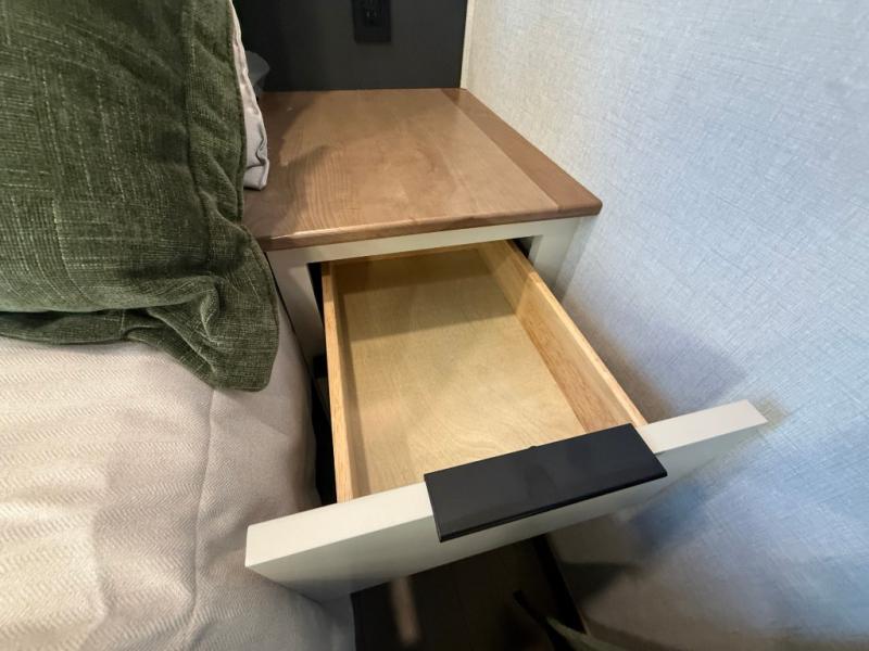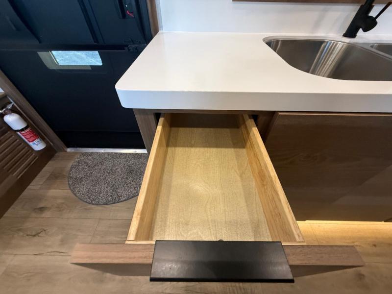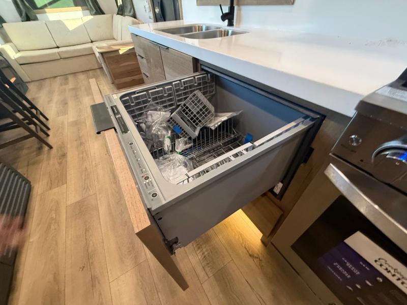 For those who appreciate a destination trailer easier to maintain, this slide-less unit will be perfect for you! Your crew can relax comfortably in the front living area that includes an L-shaped sleeper sofa across from an entertainment center or enjoy the views out the window in front of the countertop with chairs. The full kitchen will allow you to make your best home-cooked meals, and the spacious walk-through bath is easily accessible. You're sure to love the rear bedroom that includes a queen bed with a king bed option, along with dual bedroom closets to keep everything organized!