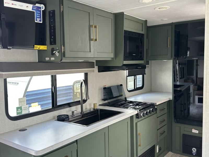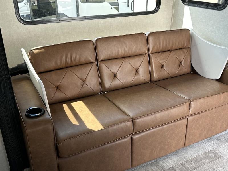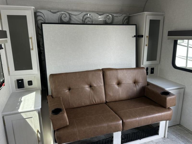 You'll love the versatility and space you'll have in this couple's trailer! The front Murphy bed provides seating and sleeping space, and the wardrobes will help keep your items organized. There is theater seating across from the TV so you can relax each evening, or you may just find yourselves outdoors under the patio awning. A full kitchen lets you cook and store meals while at the campground, and the full bath on board means you won't have to use the camp's facilities! The Beast Mode Package on this model comes with an additional 200W solar panel, a 2,000W inverter, and an independent suspension for better clearance and handling!
