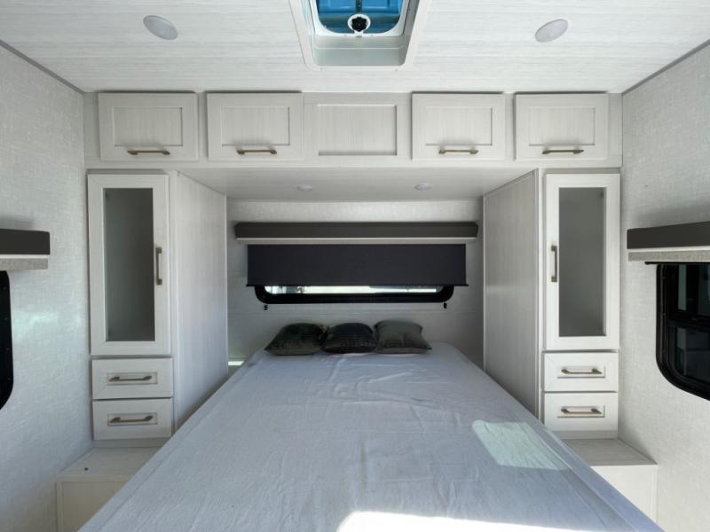 If you want to break free from the travel constraints of standard trailers, then you must choose the Forest River No Boundaries travel trailer because they are rugged and ready for adventure! These 18, 19, and 20 Series trailers are built with a laminated wall with aluminum construction and Azdel composite substrate for added durability. There is also a rugged tire and wheel package with a spare tire included, a fully enclosed underbelly, and a Cold Weather Package with 12V heated tank pads and forced air to help extend your camping season. A 15K A/C will provide comfort during the summer, and a Bluetooth speaker will let you listen to your favorite tunes while you're at the campground. Choose the optional Beast Mode Package for an additional 200W solar panel, 2,000W inverter, and Beast Mode independent suspension!