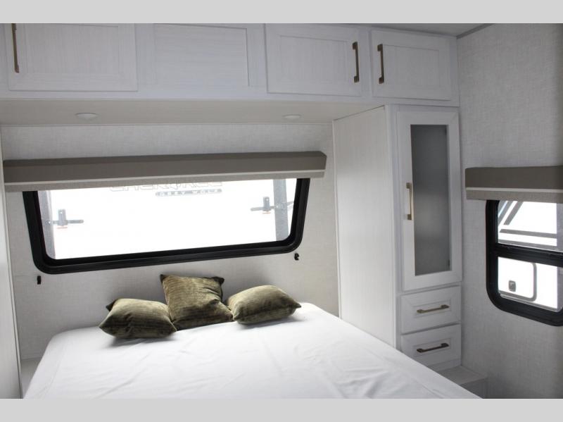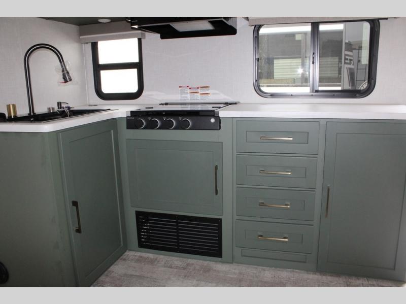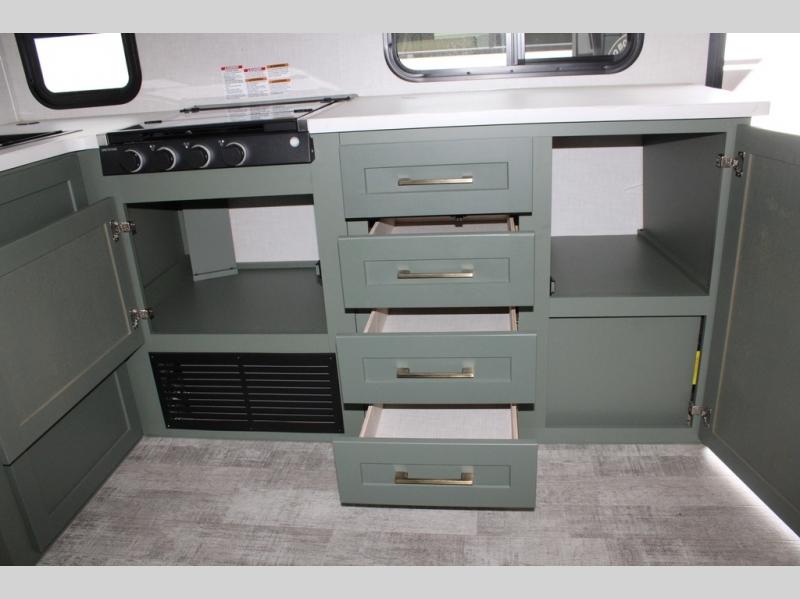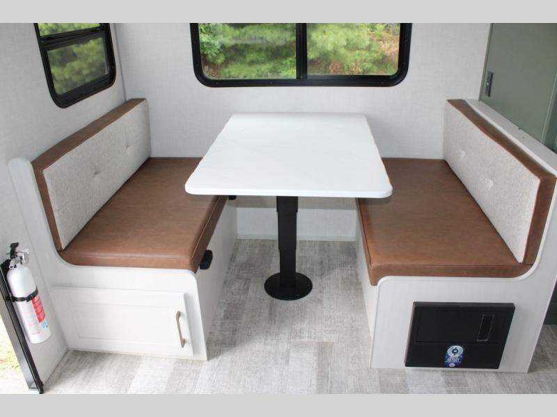 If you want to break free from the travel constraints of standard trailers, then you must choose the Forest River No Boundaries travel trailer because they are rugged and ready for adventure! These 18, 19, and 20 Series trailers are built with a laminated wall with aluminum construction and Azdel composite substrate for added durability. There is also a rugged tire and wheel package with a spare tire included, a fully enclosed underbelly, and a Cold Weather Package with 12V heated tank pads and forced air to help extend your camping season. A 15K A/C will provide comfort during the summer, and a Bluetooth speaker will let you listen to your favorite tunes while you're at the campground. Choose the optional Beast Mode Package for an additional 200W solar panel, 2,000W inverter, and Beast Mode independent suspension!