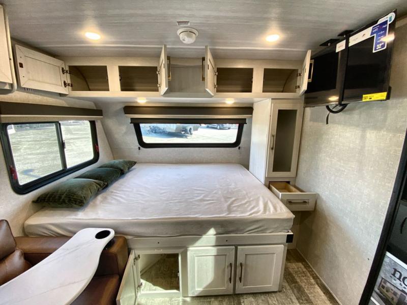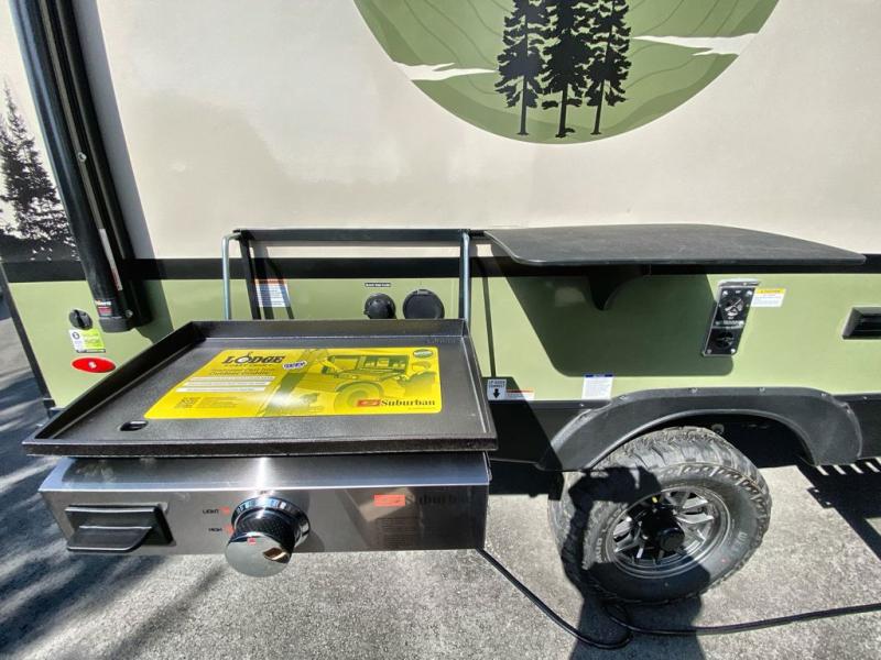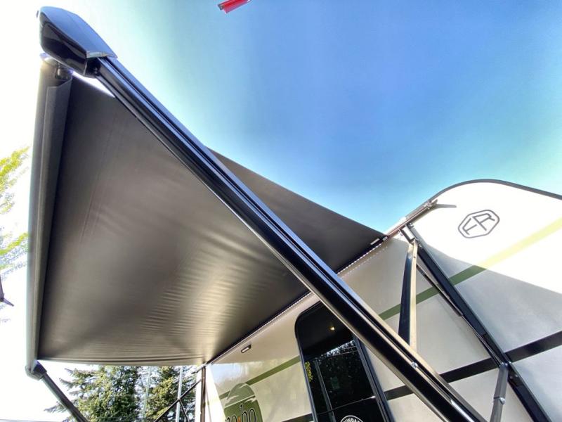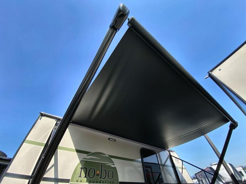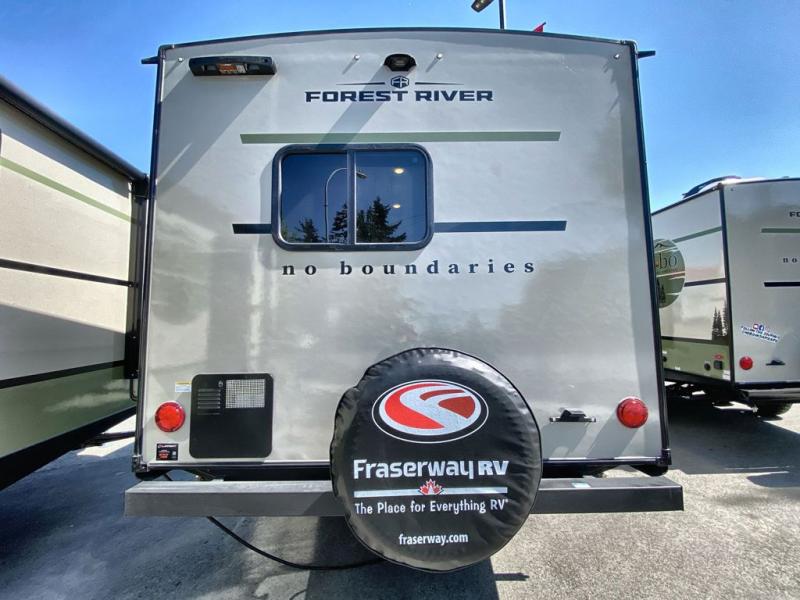 If you want to break free from the travel constraints of standard trailers, then you must choose the Forest River No Boundaries travel trailer because they are rugged and ready for adventure! These 18, 19, and 20 Series trailers are built with a laminated wall with aluminum construction and Azdel composite substrate for added durability. There is also a rugged tire and wheel package with a spare tire included, a fully enclosed underbelly, and a Cold Weather Package with 12V heated tank pads and forced air to help extend your camping season. A 15K A/C will provide comfort during the summer, and a Bluetooth speaker will let you listen to your favorite tunes while you're at the campground. Choose the optional Beast Mode Package for an additional 200W solar panel, 2,000W inverter, and Beast Mode independent suspension!