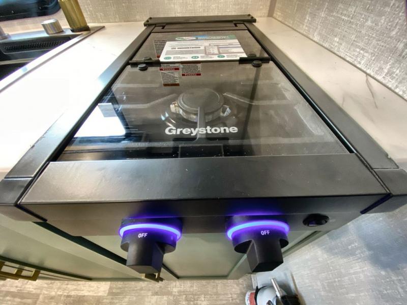 If you want to break free from the travel constraints of standard trailers, then you must choose the Forest River No Boundaries travel trailer because they are rugged and ready for adventure! These 18, 19, and 20 Series trailers are built with a laminated wall with aluminum construction and Azdel composite substrate for added durability. There is also a rugged tire and wheel package with a spare tire included, a fully enclosed underbelly, and a Cold Weather Package with 12V heated tank pads and forced air to help extend your camping season. A 15K A/C will provide comfort during the summer, and a Bluetooth speaker will let you listen to your favorite tunes while you're at the campground. Choose the optional Beast Mode Package for an additional 200W solar panel, 2,000W inverter, and Beast Mode independent suspension!