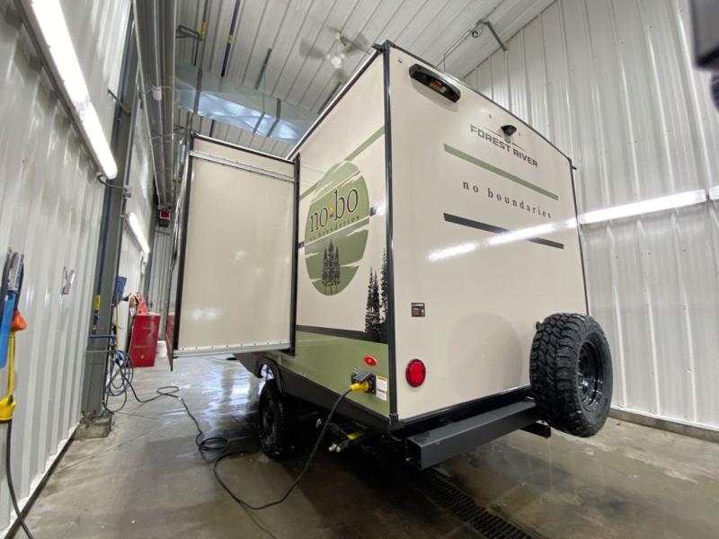 If you want to break free from the travel constraints of standard trailers, then you must choose the Forest River No Boundaries travel trailer because they are rugged and ready for adventure! These 18, 19, and 20 Series trailers are built with a laminated wall with aluminum construction and Azdel composite substrate for added durability. There is also a rugged tire and wheel package with a spare tire included, a fully enclosed underbelly, and a Cold Weather Package with 12V heated tank pads and forced air to help extend your camping season. A 15K A/C will provide comfort during the summer, and a Bluetooth speaker will let you listen to your favorite tunes while you're at the campground. Choose the optional Beast Mode Package for an additional 200W solar panel, 2,000W inverter, and Beast Mode independent suspension!