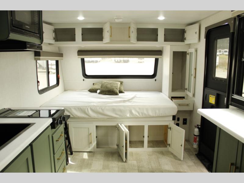 If you want to break free from the travel constraints of standard trailers, then you must choose the Forest River No Boundaries travel trailer because they are rugged and ready for adventure! These 18, 19, and 20 Series trailers are built with a laminated wall with aluminum construction and Azdel composite substrate for added durability. There is also a rugged tire and wheel package with a spare tire included, a fully enclosed underbelly, and a Cold Weather Package with 12V heated tank pads and forced air to help extend your camping season. A 15K A/C will provide comfort during the summer, and a Bluetooth speaker will let you listen to your favorite tunes while you're at the campground. Choose the optional Beast Mode Package for an additional 200W solar panel, 2,000W inverter, and Beast Mode independent suspension!