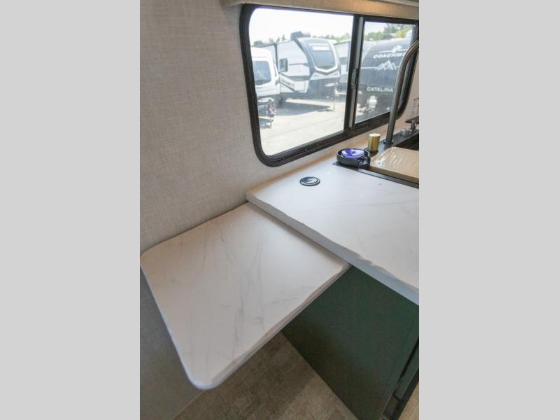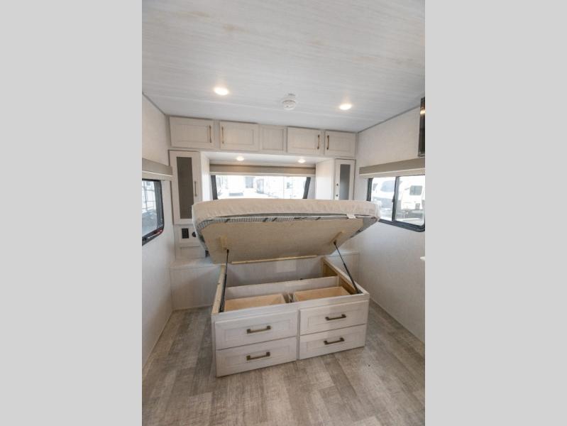 If you want to break free from the travel constraints of standard trailers, then you must choose the Forest River No Boundaries travel trailer because they are rugged and ready for adventure! These 18, 19, and 20 Series trailers are built with a laminated wall with aluminum construction and Azdel composite substrate for added durability. There is also a rugged tire and wheel package with a spare tire included, a fully enclosed underbelly, and a Cold Weather Package with 12V heated tank pads and forced air to help extend your camping season. A 15K A/C will provide comfort during the summer, and a Bluetooth speaker will let you listen to your favorite tunes while you're at the campground. Choose the optional Beast Mode Package for an additional 200W solar panel, 2,000W inverter, and Beast Mode independent suspension!