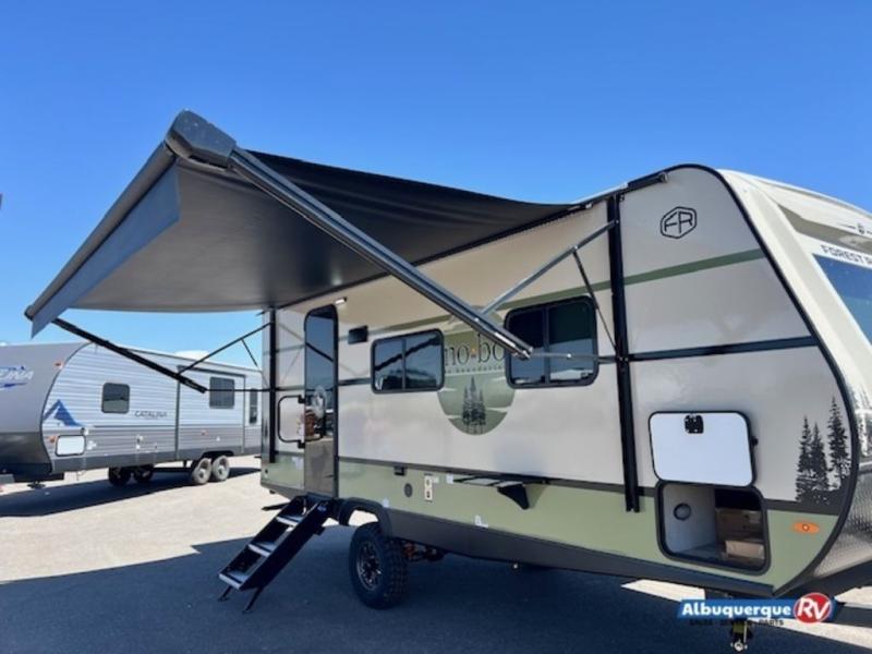 If you want to break free from the travel constraints of standard trailers, then you must choose the Forest River No Boundaries travel trailer because they are rugged and ready for adventure! These 18, 19, and 20 Series trailers are built with a laminated wall with aluminum construction and Azdel composite substrate for added durability. There is also a rugged tire and wheel package with a spare tire included, a fully enclosed underbelly, and a Cold Weather Package with 12V heated tank pads and forced air to help extend your camping season. A 15K A/C will provide comfort during the summer, and a Bluetooth speaker will let you listen to your favorite tunes while you're at the campground.