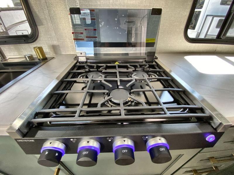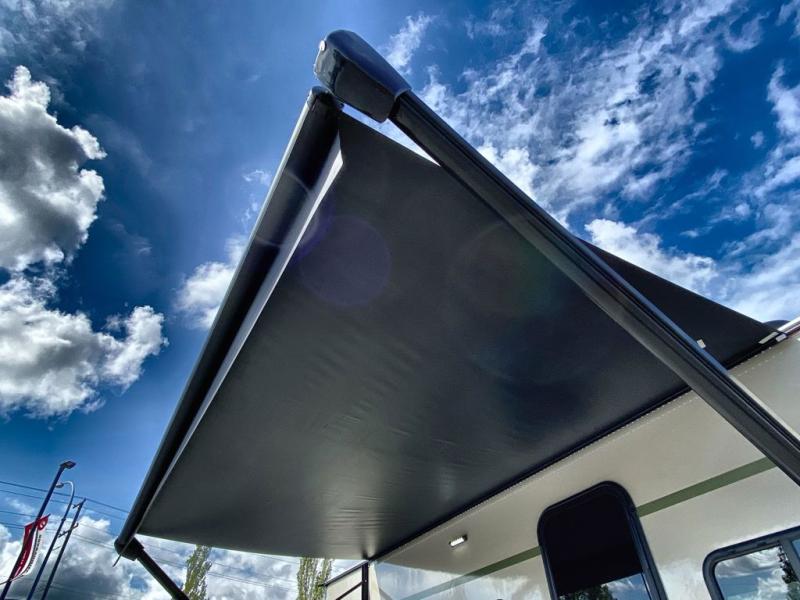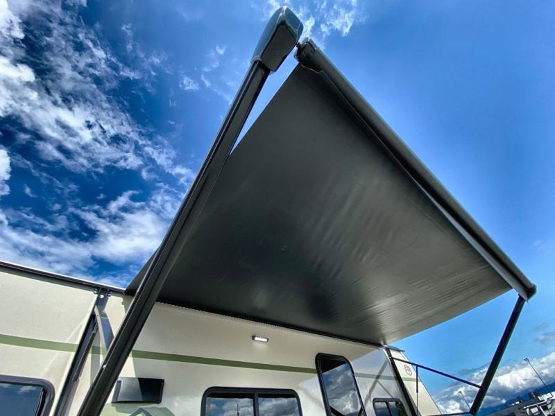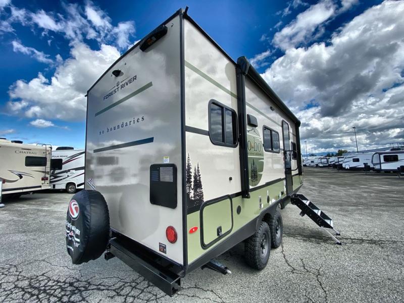 If you want to break free from the travel constraints of standard trailers, then you must choose the Forest River No Boundaries travel trailer because they are rugged and ready for adventure! These 18, 19, and 20 Series trailers are built with a laminated wall with aluminum construction and Azdel composite substrate for added durability. There is also a rugged tire and wheel package with a spare tire included, a fully enclosed underbelly, and a Cold Weather Package with 12V heated tank pads and forced air to help extend your camping season. A 15K A/C will provide comfort during the summer, and a Bluetooth speaker will let you listen to your favorite tunes while you're at the campground. Choose the optional Beast Mode Package for an additional 200W solar panel, 2,000W inverter, and Beast Mode independent suspension!