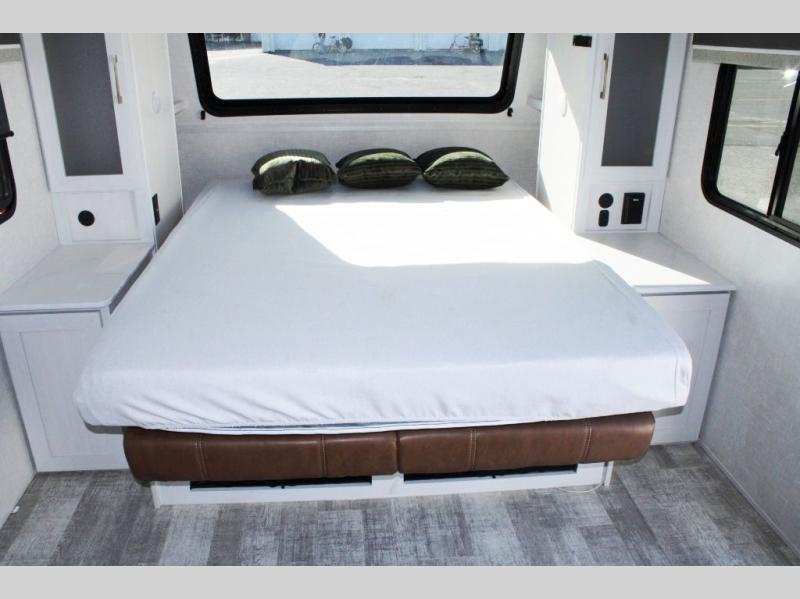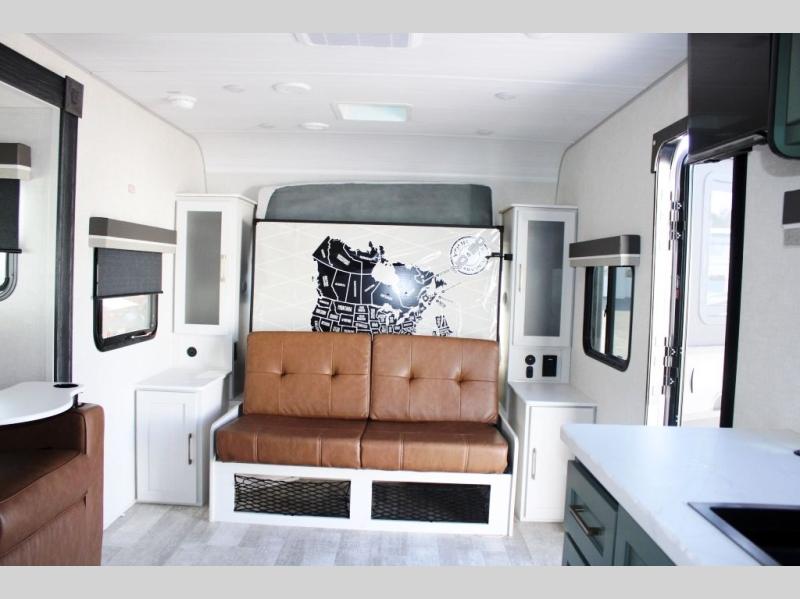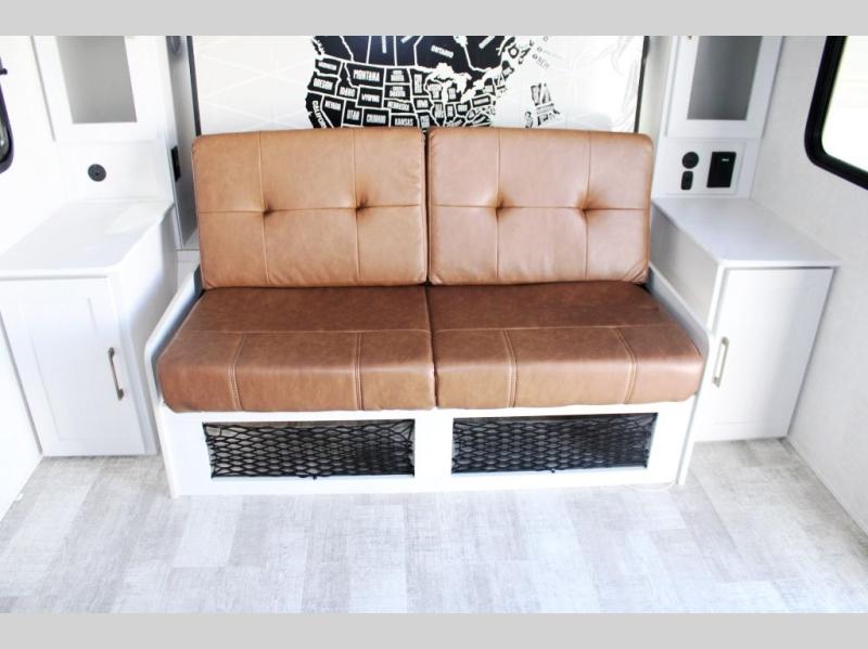 If you want to break free from the travel constraints of standard trailers, then you must choose the Forest River No Boundaries travel trailer because they are rugged and ready for adventure! These 18, 19, and 20 Series trailers are built with a laminated wall with aluminum construction and Azdel composite substrate for added durability. There is also a rugged tire and wheel package with a spare tire included, a fully enclosed underbelly, and a Cold Weather Package with 12V heated tank pads and forced air to help extend your camping season. A 15K A/C will provide comfort during the summer, and a Bluetooth speaker will let you listen to your favorite tunes while you're at the campground. Choose the optional Beast Mode Package for an additional 200W solar panel, 2,000W inverter, and Beast Mode independent suspension!