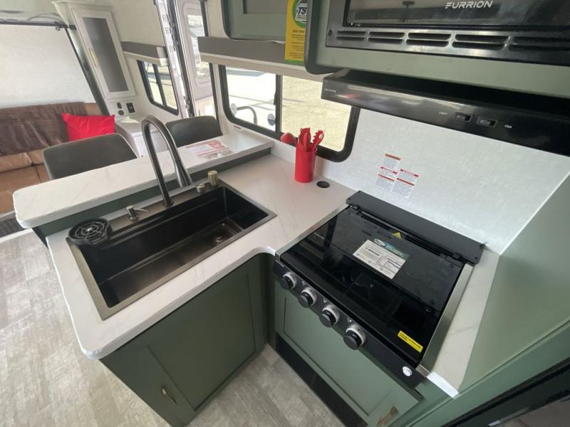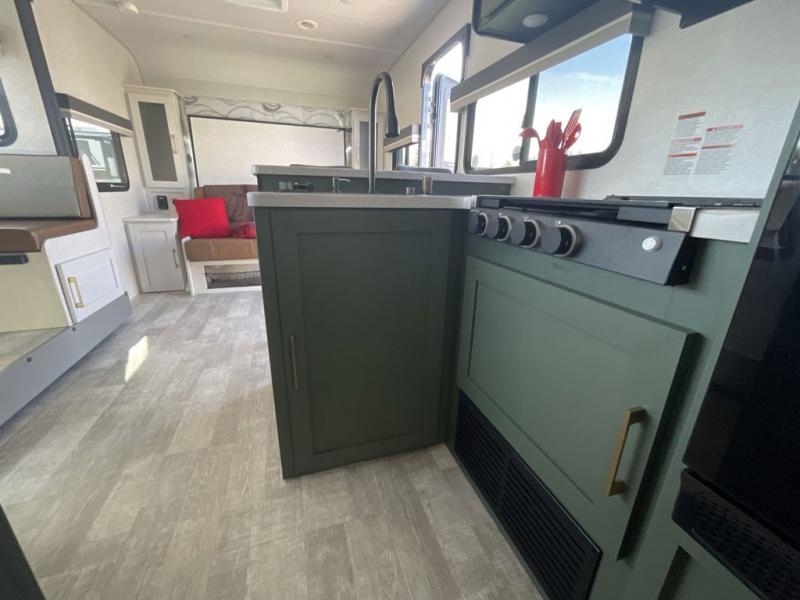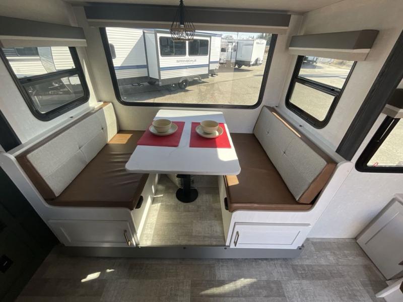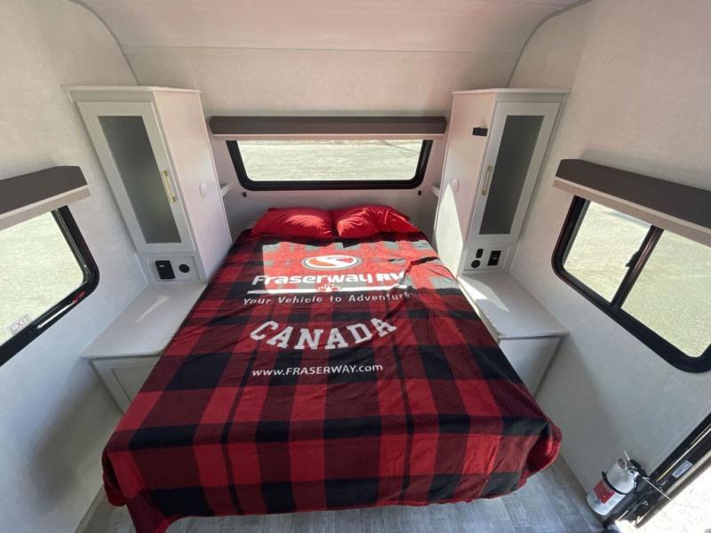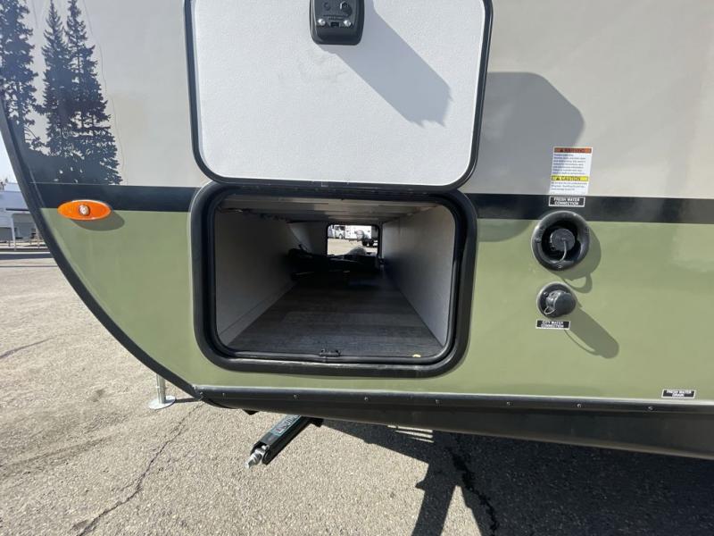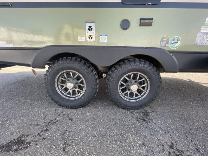 If you want to break free from the travel constraints of standard trailers, then you must choose the Forest River No Boundaries travel trailer because they are rugged and ready for adventure! These 18, 19, and 20 Series trailers are built with a laminated wall with aluminum construction and Azdel composite substrate for added durability. There is also a rugged tire and wheel package with a spare tire included, a fully enclosed underbelly, and a Cold Weather Package with 12V heated tank pads and forced air to help extend your camping season. A 15K A/C will provide comfort during the summer, and a Bluetooth speaker will let you listen to your favorite tunes while you're at the campground. Choose the optional Beast Mode Package for an additional 200W solar panel, 2,000W inverter, and Beast Mode independent suspension!