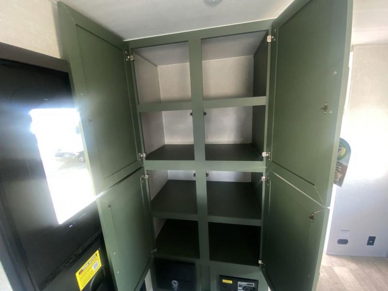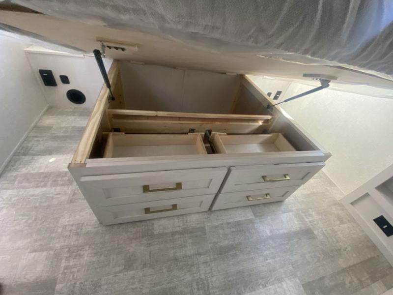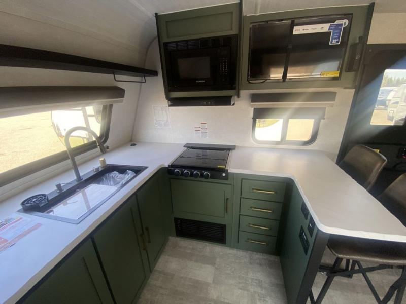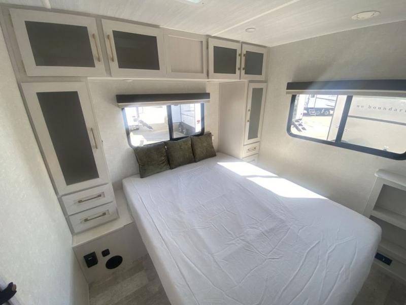 If you want to break free from the travel constraints of standard trailers, then you must choose the Forest River No Boundaries travel trailer because they are rugged and ready for adventure! These 18, 19, and 20 Series trailers are built with a laminated wall with aluminum construction and Azdel composite substrate for added durability. There is also a rugged tire and wheel package with a spare tire included, a fully enclosed underbelly, and a Cold Weather Package with 12V heated tank pads and forced air to help extend your camping season. A 15K A/C will provide comfort during the summer, and a Bluetooth speaker will let you listen to your favorite tunes while you're at the campground. Choose the optional Beast Mode Package for an additional 200W solar panel, 2,000W inverter, and Beast Mode independent suspension!