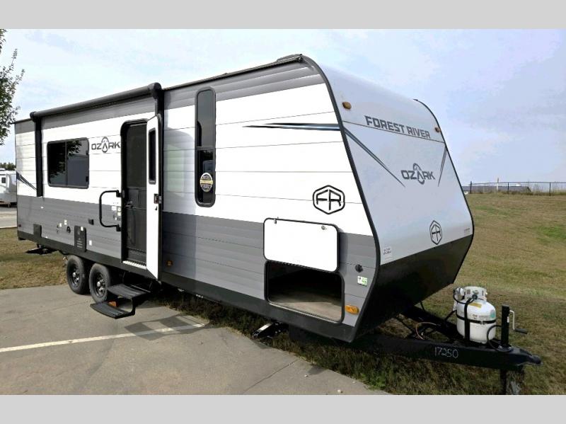 With any Ozark travel trailer or toy hauler by Forest River, you can expect lightweight towing, tons of standard features, and a great value! Each one is built with solid materials, including fiberglass insulation throughout, front diamond plate rock guard for added protection, and a powder coated I-beam frame with camber for more structural support! The stylish interior will have you feeling right at home, and you'll find plenty of storage spaces for your personal belongings, camp gear, and more. And since there are a variety of floorplans to choose from, including Limited Edition travel trailers, single axle and dual axle models, plus toy haulers, you're sure to find the Ozark that fits your needs!