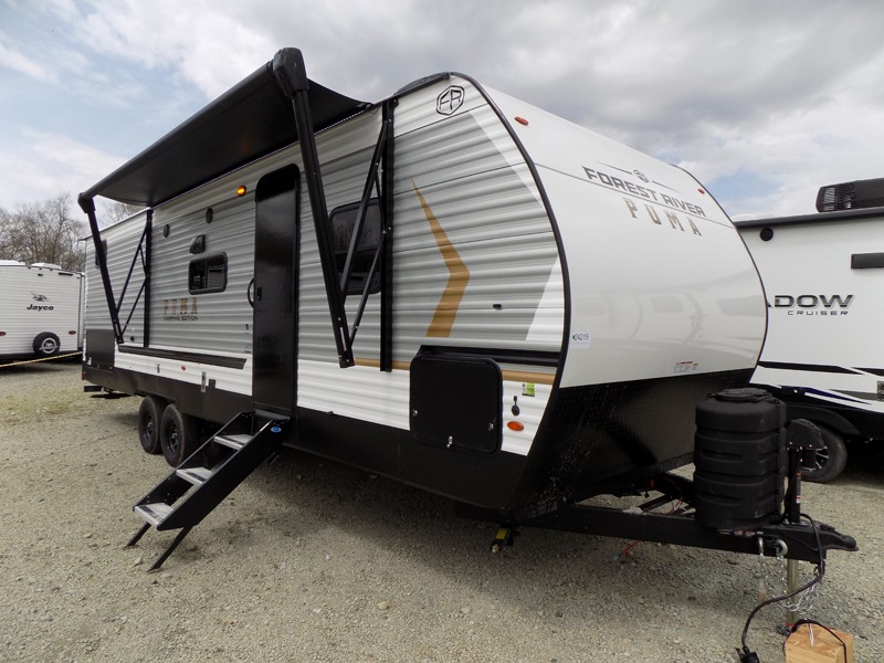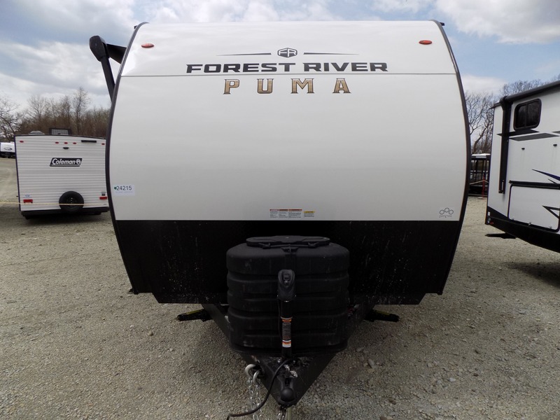 The Puma Camping Edition by Palomino offer an affordable travel trailer for rookie campers or seasoned RVers! They are built with 5/8" tongue and groove plywood flooring and a front diamond plate for added protection. There are also exterior clamp style door latches, back up camera prep, and 20 lb. LP bottles. Head inside to find Thermofoil countertops with a smooth drop edge, bedroom USB ports and outlets, and a GE appliance and kitchen package.