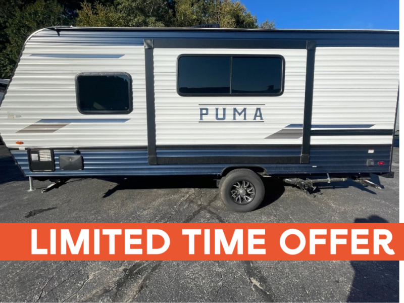 With any Puma Ultra Lite travel trailer by Palomino, you will experience a lighter weight RV that is eco-friendly and offers great fuel efficiency with maximum towability. The exterior offers an AlphaPly roofing membrane and a Darco wrapped underbelly for durability and years of use, a power tongue jack for easy setup, a Super Lube axle, a front diamond plate to protect against road debris, front and rear stabilizer jacks, plus solar and WiFi prep. Inside, there is LED ceiling lights, Beauflor linoleum for durability and easy cleanup, a decorative kitchen backsplash, contemporary hardware, light and bath fixtures for style, a divided silverware drawer for organization, and a 78" interior height.