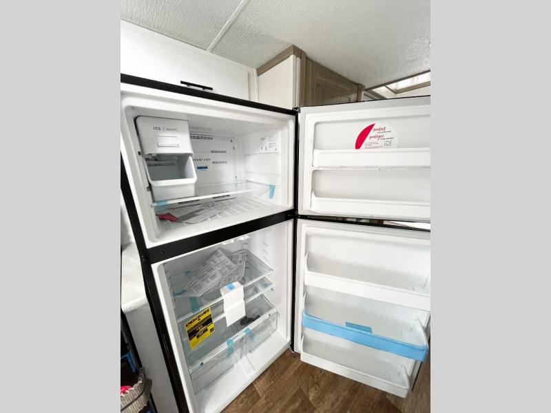 Enjoy a weekend getaway with this Quailridge park model! It features a front living area with a comfortable hide-a-bed sofa that you can transform into a sleeping space for added guests, a recliner chair, an entertainment center, plus a ceiling fan above it all to keep you cool. After you have whipped up your best meal in the complete kitchen, you can head to the hardwood dinette table with four chairs to enjoy it there comfortably, and if there happens to be any leftovers, you can easily store them inside the 18-cu. ft. frost-free refrigerator. The full bathroom has everything you need to get squeaky clean including a linen closet and a vanity sink!