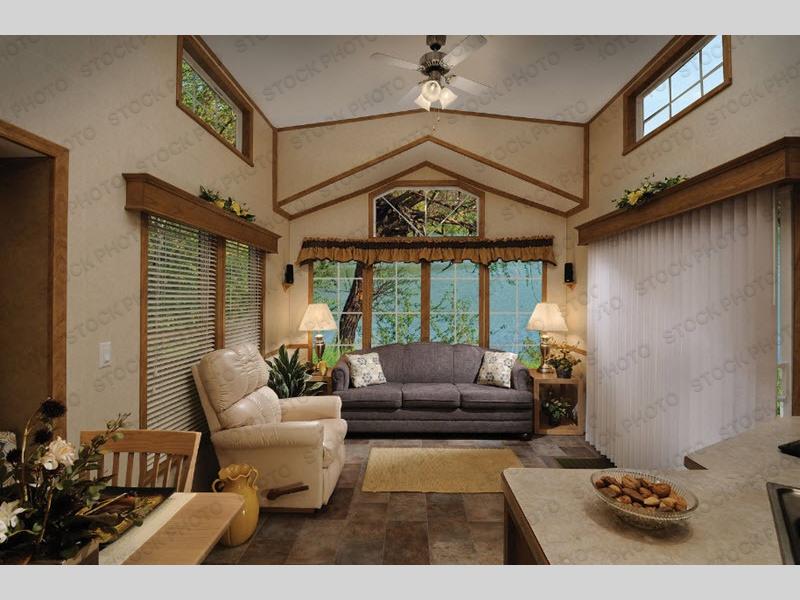 Enjoy a weekend getaway with this Quailridge park model! It features a front living area with a comfortable hide-a-bed sofa that you can transform into a sleeping space for added guests, a recliner chair, an entertainment center, plus a ceiling fan above it all to keep you cool. After you have whipped up your best meal in the complete kitchen, you can head to the free-standing dinette to enjoy it there comfortably, and if there happens to be any leftovers, then you can easily store them inside the 18-cu. ft. two-door refrigerator. The full bathroom has everything you need to get squeaky clean including a linen closet and a vanity sink!