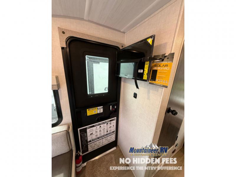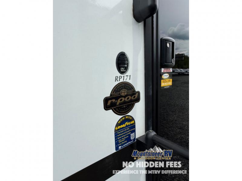 With any R-Pod travel trailer by Forest River, you will enjoy affordable luxury at the lowest tow weight in its class! There is a sealed underbelly with forced heat, a curved dual-pane acrylic front window with a bug screen and night shade, plus a large roof mounted solar panel for off-grid capabilities. The 15K A/C unit will keep you comfortable during the summer camping months, and the tankless water heater will provide endless hot showers after hiking, biking, swimming and more! Each model also includes a black glass friction hinge entrance door, roof ladder prep, exterior motion lighting, plus a hot and cold exterior spray port to wash off sand from the beach. Inside, you'll enjoy seamless Surf-X kitchen countertops, blackout roller shades, and a central vacuum system for hassle-free cleaning!
