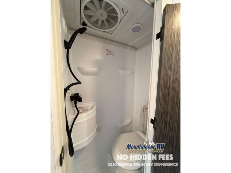 This travel trailer is perfect for weekend trips or month-long vacations to enjoy the great outdoors with conveniences of home. You can easily sleep three people with a rear queen bed and a front dinette folded down for the little ones. This unit also includes a two-burner cooktop and convection microwave to make meals inside. You will also find a convenient wet bath where you can easily get ready for bed each night, and the night light will help you not stumble over the sleeping dog!