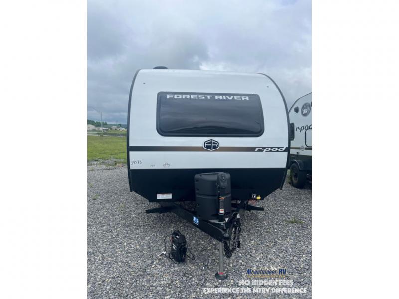 With any R-Pod travel trailer by Forest River, you will enjoy affordable luxury at the lowest tow weight in its class! There is a sealed underbelly with forced heat, a curved dual-pane acrylic front window with a bug screen and night shade, plus a large roof mounted solar panel for off-grid capabilities. The 15K A/C unit will keep you comfortable during the summer camping months, and the tankless water heater will provide endless hot showers after hiking, biking, swimming and more! Each model also includes a black glass friction hinge entrance door, roof ladder prep, exterior motion lighting, plus a hot and cold exterior spray port to wash off sand from the beach. Inside, you'll enjoy seamless Surf-X kitchen countertops, blackout roller shades, and a central vacuum system for hassle-free cleaning!